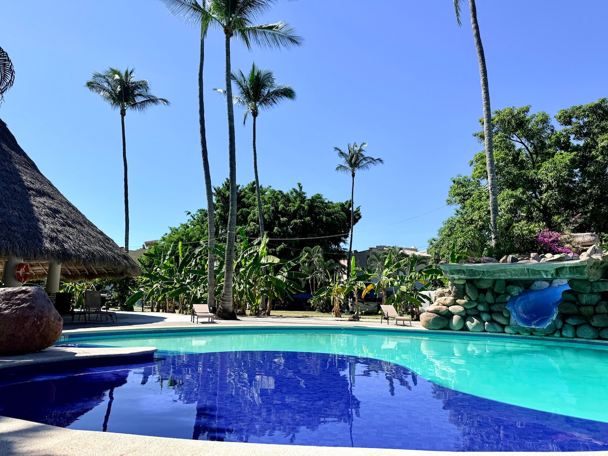 Suite 1 recámara estilo rústico mexicano en planta baja en SUITES FLAMINGOS. Sala, cocina, comedor, wifi, televisión por cable y aire acondicionado. Disfrute de la vista al jardín y de la tranquila zona de piscina común. Este condominio ha sido tratado con sumo cuidado e incluye todo lo necesario para su completa comodidad. !A solo una cuadra de la playa, del supermercado Chedraui, paradas de autobús y marina acerca. Recomendado para personas viajando solas o parejas que buscan tranquilidad.