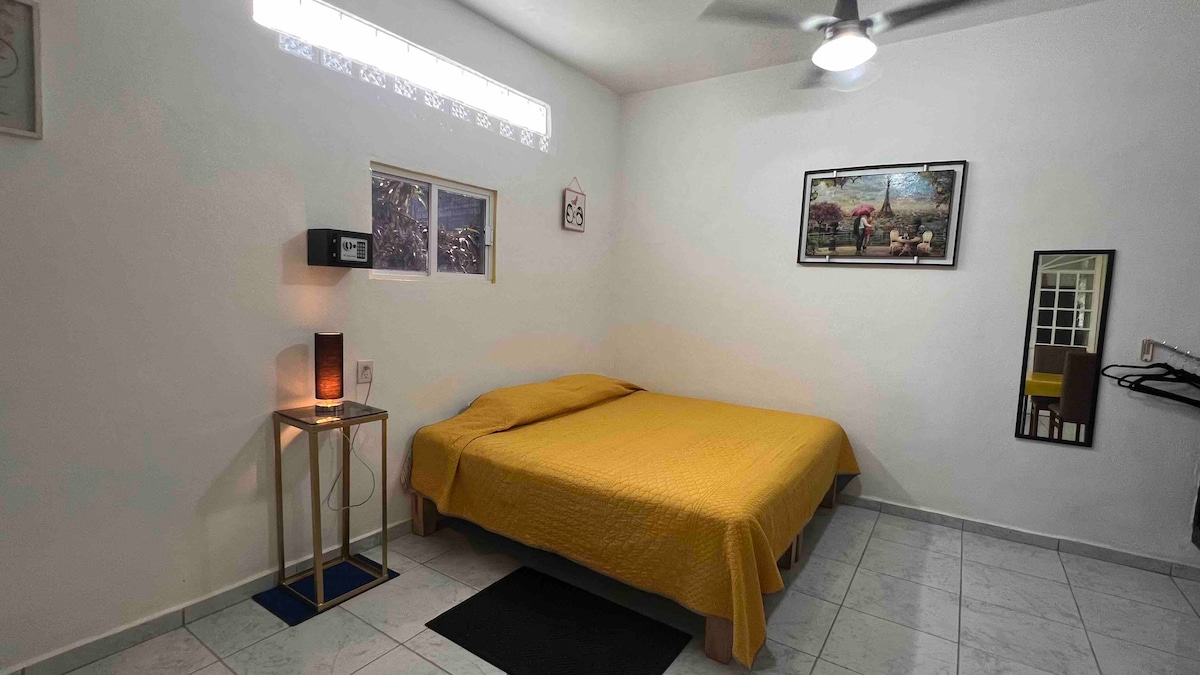 Hermoso departamento para 2 personas con una recámara cama queen, baño, sala, cocina integral,A/A y ventilador de techo. Se encuentra ubicado dentro de un edificio, está en el piso número 3, cuenta con circuito cerrado, áreas comunes, servicio de auto lavandería (costo de extra) y lo mejor es el mirador en el último piso o el Roof garden, donde podrás apreciar de la bella vista de la bahía y los hermosos atardeceres.