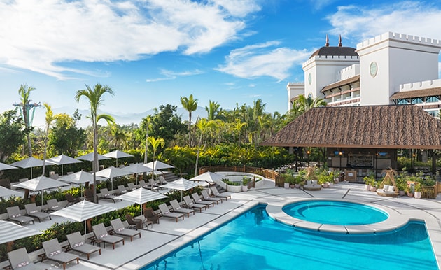 PURE LUXURY ! Occupancy : 8 (6A+2K) This suite has 2 B with king-size beds in each room 2.5 B with 2 Jacuzzi tubs, a private terrace with a plunge pool, separate private deck, a gourmet kitchen, 1 living area with sleeper sofas, 3TVs. Twice-daily maid service. Huge property to explore ! So many all kind of restaurants ! So many activities for adults and kids ! Golf. Spa. Meal package deal is available at the resort. Please contact me first for availability of the resort inventory.