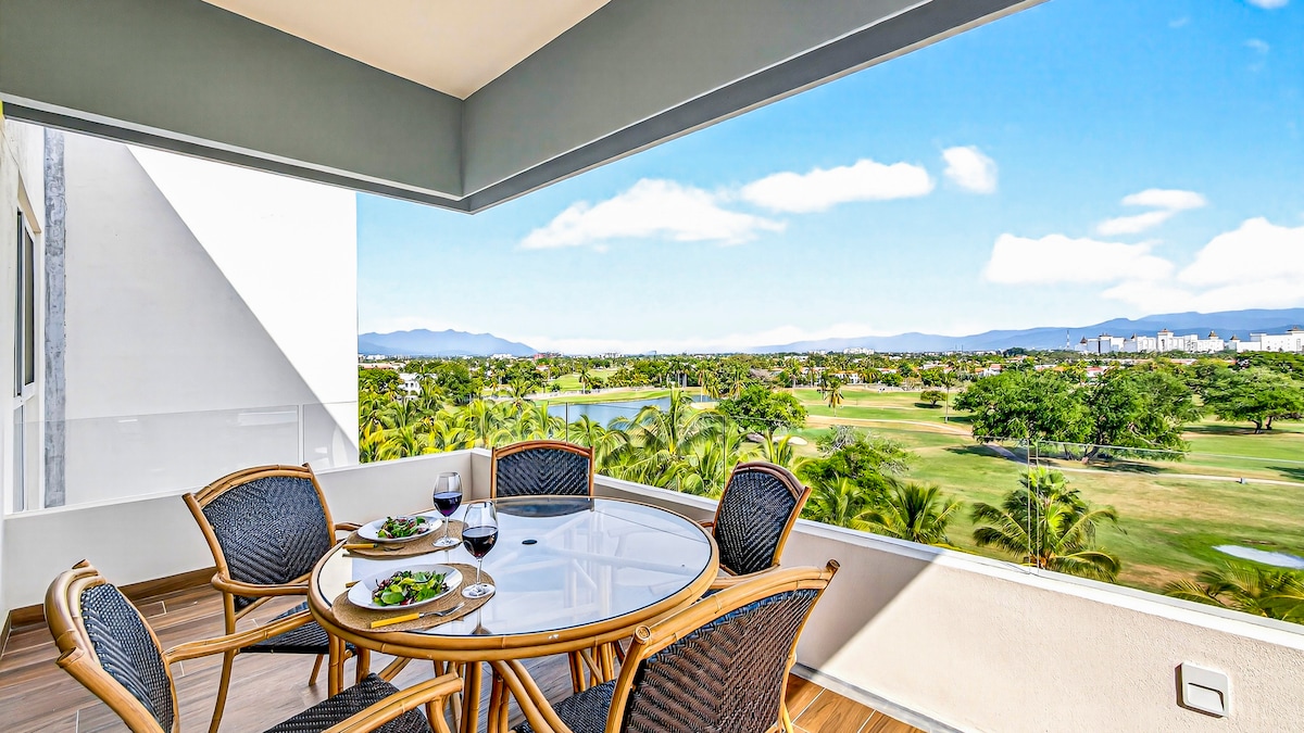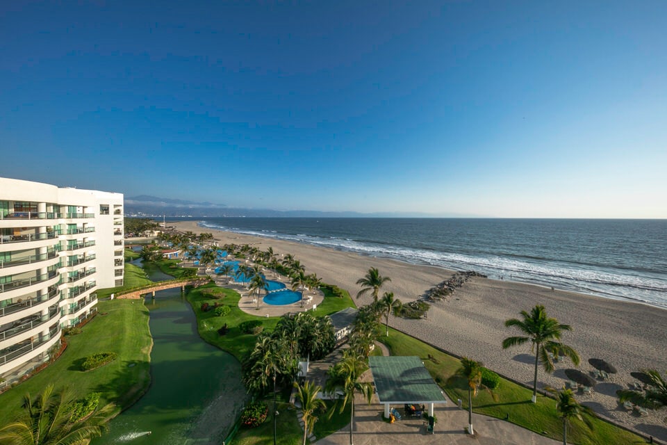 Escape to Your Perfect Nuevo Vallarta Getaway Inside, you’ll enjoy: ° Two spacious bedrooms with comfortable beds and lots of storage ° Full air conditioned ° Equipped kitchen perfect for cooking or longer stays ° Private balcony with stunning views ° Multiple pools for cooling off ° Jacuzzi for unwinding ° Modern gym to stay active ° Easy access to the nearby beach ° Views of the pristine golf course/Marina ° Free parking Your perfect coastal stay awaits!!