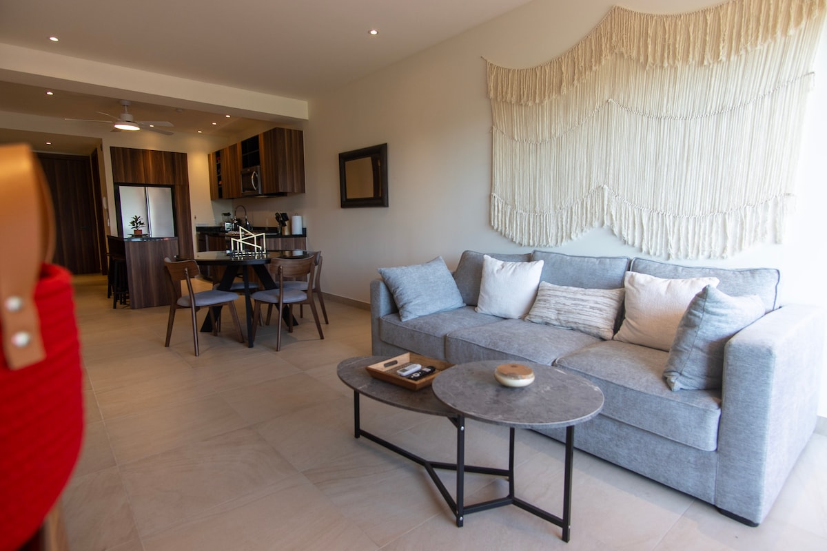 Condo Rosina is a freshly updated 1-bedroom condo on the 4th floor of 3.14 Living in Nuevo Vallarta repainted in June 2025. Enjoy mountain views and a cozy balcony with BBQ and sunrise view. Sleeps 2 with a king bed, 1 bathroom with shower, fully equipped kitchen, coffee station, high-speed internet, great new A/C, and a dedicated workspace. Spacious living area with large couch. Walk to the beach in 8 minutes or enjoy cafés, restaurants, and shops just downstairs. Peaceful and well located.