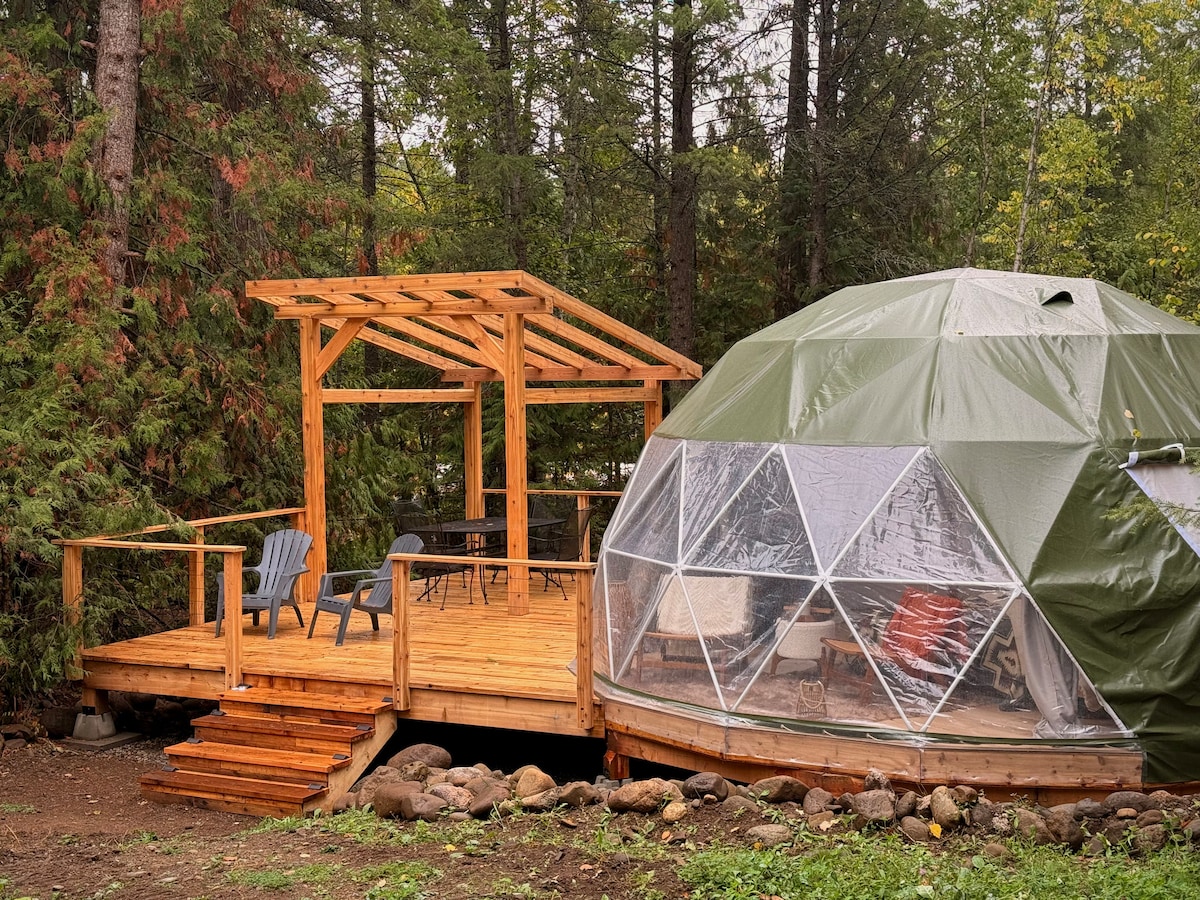 Stay on 160 wild acres of boreal forest at Glamp Good! Family & pet friendly geodome glamping! Sleep under the stars in our private and peaceful off-grid geodomes in the Boreal Forest. Enjoy an enchanted, undeveloped and forested acreage. Unwind and enjoy uncrowded experiences in the area. Melt away all your stress in our brand new wood-burning Nordic sauna. **If the dates you desire are unavailable, check out our other listing: Boreal Forest Geodome - The Tamarack!