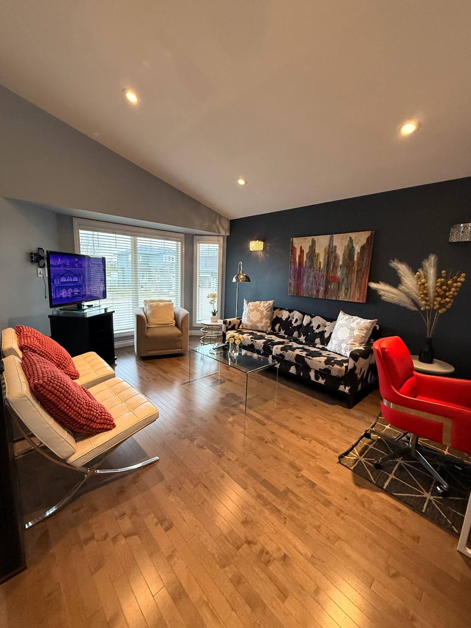 Our home is thoughtfully designed to provide a comfortable & relaxing environment for your entire family. With ample seating, built-in projector screen, toys for all ages, gas fireplace, two-person steam shower & various kitchen appliances. We’ve aimed to minimize your packing, maximize your fun & help you truly embrace vacation mode. Location: Our space backs onto a beautiful green space with playground, walking trails & is just 5 minutes from South Edmonton Common, MW Town Centre & the LRT.