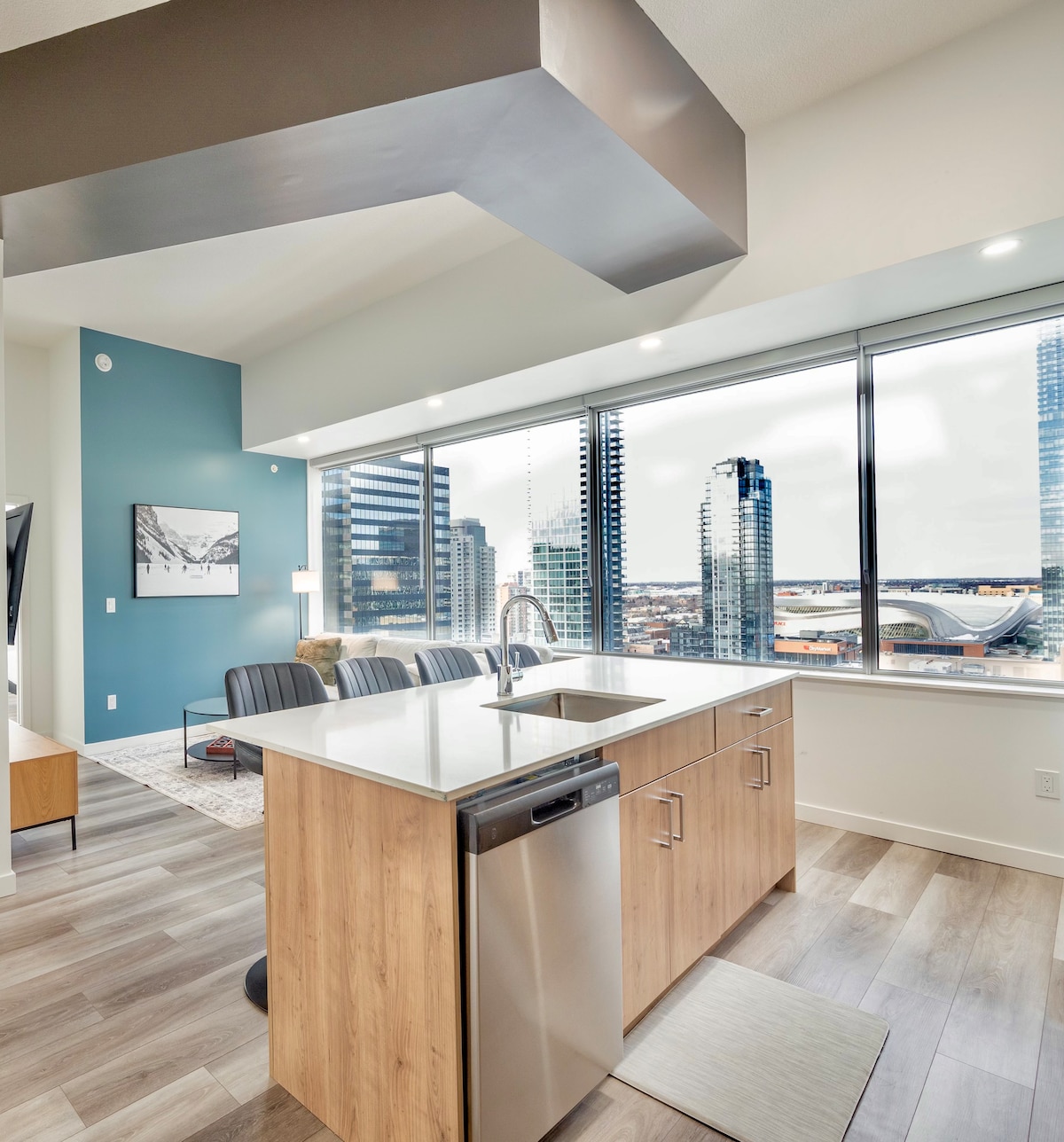 市中心河滨公寓,可欣赏山景