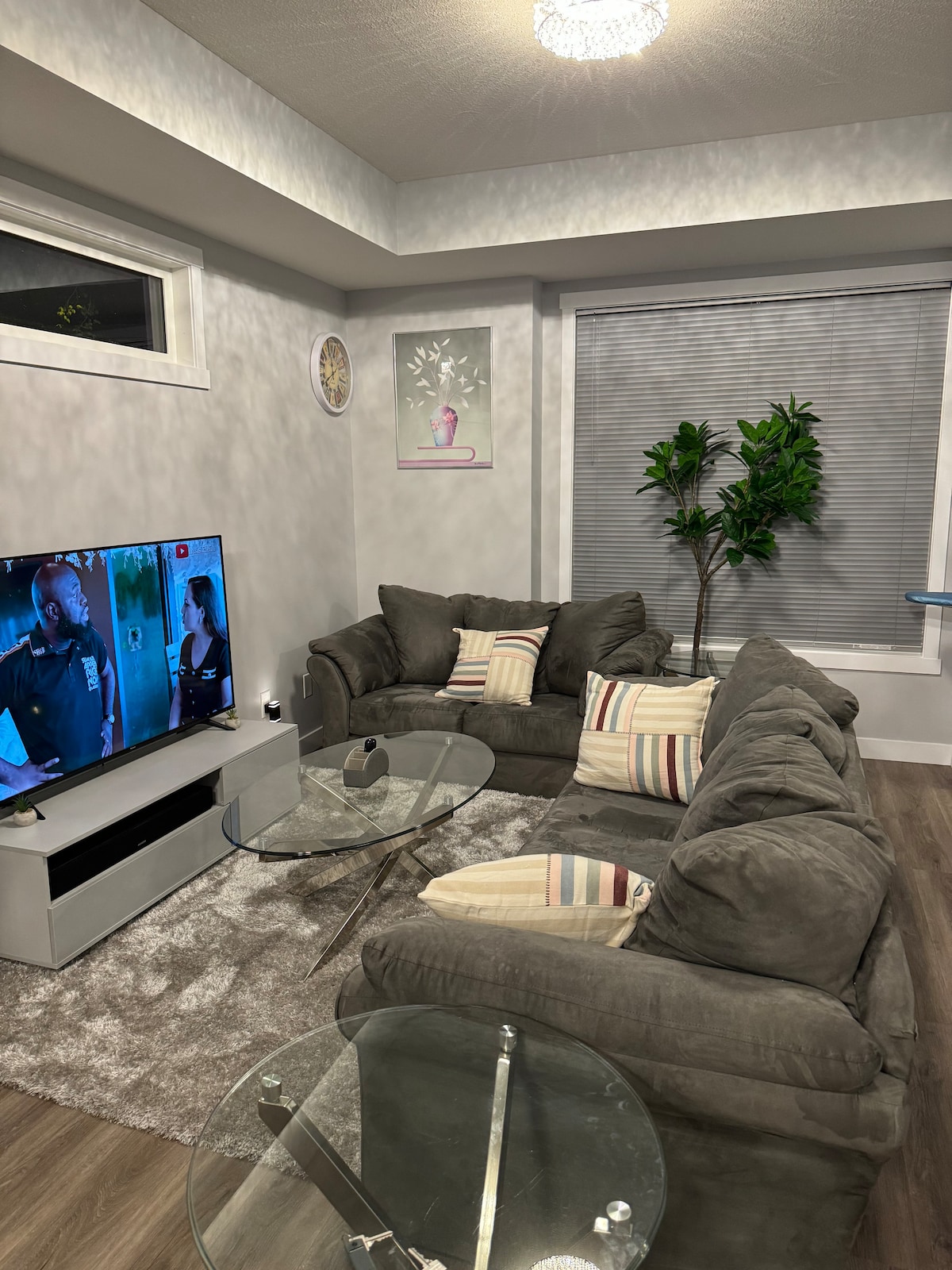 **NO CLEANING FEE**Beautiful & Very spacious, clean, well stocked, upgraded executive style half duplex townhouse in Foxboro, Sherwood Park. Over 1650 Sq Ft townhome that has a fully finished basement, refined furnishings, high quality linens, great place to call your home away from home! 4 Bedrooms, 3.5 Bathrooms & sleeps up to 8-10 people comfortably. The double car garage also has two extra parking stalls in front on the driveway so lots of parking for you & your guests. Added guest parking!