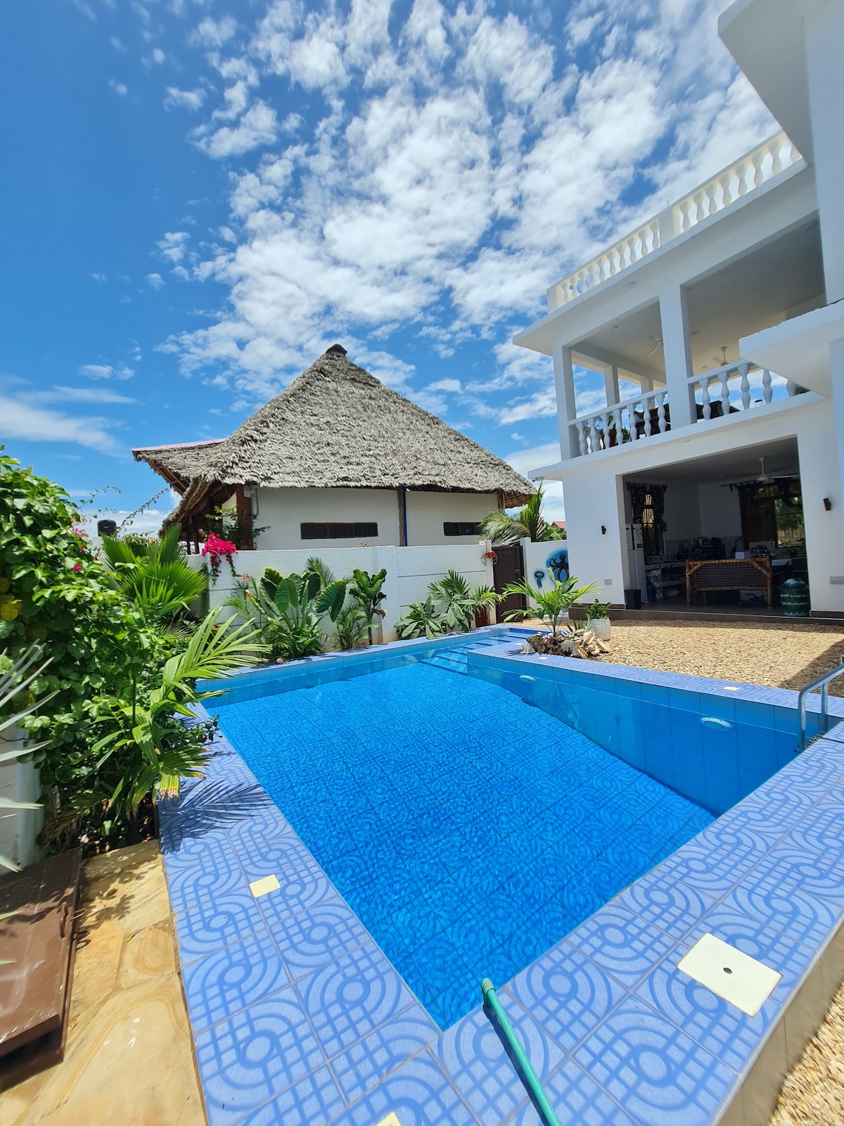 Guesthouse with a private bathroom, kitchen and outside sitting area. Big garden and shared swimming pool (only with me and my family). Wifi (20 Mb/s) available and included. The room is being cleaned once per week for longer stays. And there is a washing machine free to use if needed. It's 20-25 minutes walking to Nungwi or Kendwa beach, or 5 minutes with a car or tuktuk. We help you to arrange transport if needed 😊