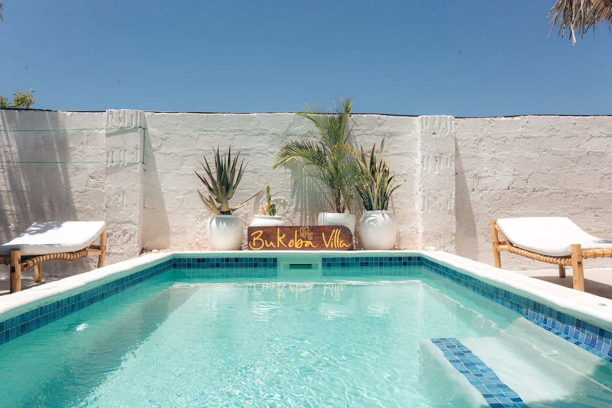 * Villa is private, it has it's own private pool and nothing is shared* Escape to our unique and stylish Bali inspired retreat, nestled amidst the breathtaking beauty of East Nungwi. A place far away from the crowds, where every detail harmonizes with nature. Wake up to the majestic sight of the sunrise, as you find yourself cocooned in lush greenery. Take a plunge into our private pool or simply relax in the midst of this picture perfect paradise. Come, experience the magic of Zanzibar.