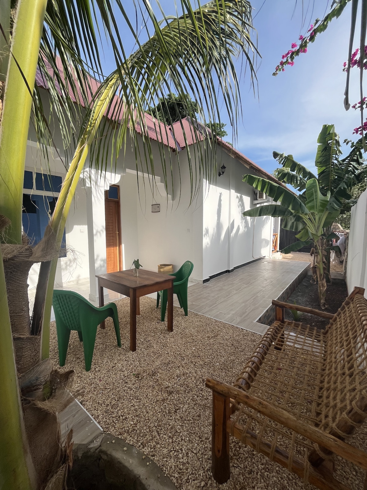 Notre maison de 2 chambres est située à 2 minutes à pied de la plage, avec un petit chemin direct en face du portail. Elle est fonctionnelle et dispose d'un joli jardin avec un coin terrasse aménagé. En 5 minutes à pied vous serez sur la place principale de Nungwi où vous trouverez des petits supermarchés, des souvenirs et plein de restaurants. Il s'agit d'un des meilleurs emplacement à Nungwi.