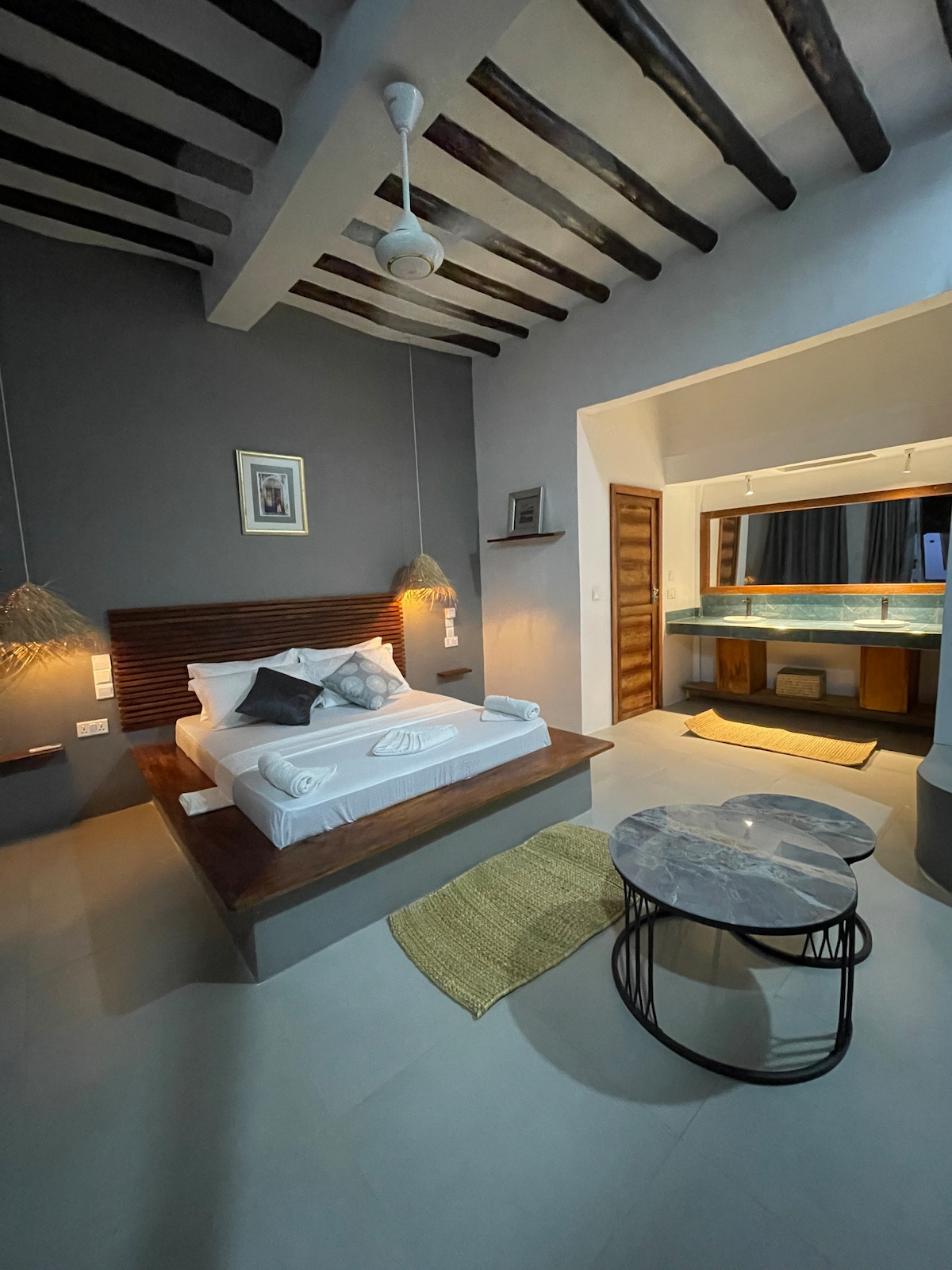 30qm großes Apartment: Bequemes Doppelbett mit Moskitonetz, private Küche und Bad. Genießt euer Frühstück auf eurem eigenen großen Balkon/Terrasse und schaut euch den wunderschönen Sonnenuntergang von der Dachterrasse aus, in einer der Hängematten, an. Ihr erreicht den weißen Sandstrand in nur 10 Gehminuten. Das 2021 neu erbaute Haus beinhaltet insgesamt 4 Appartments und befindet sich direkt in Nungwi, in der Nähe von vielen lokalen Shops. Karibu SUNzibar Home :)