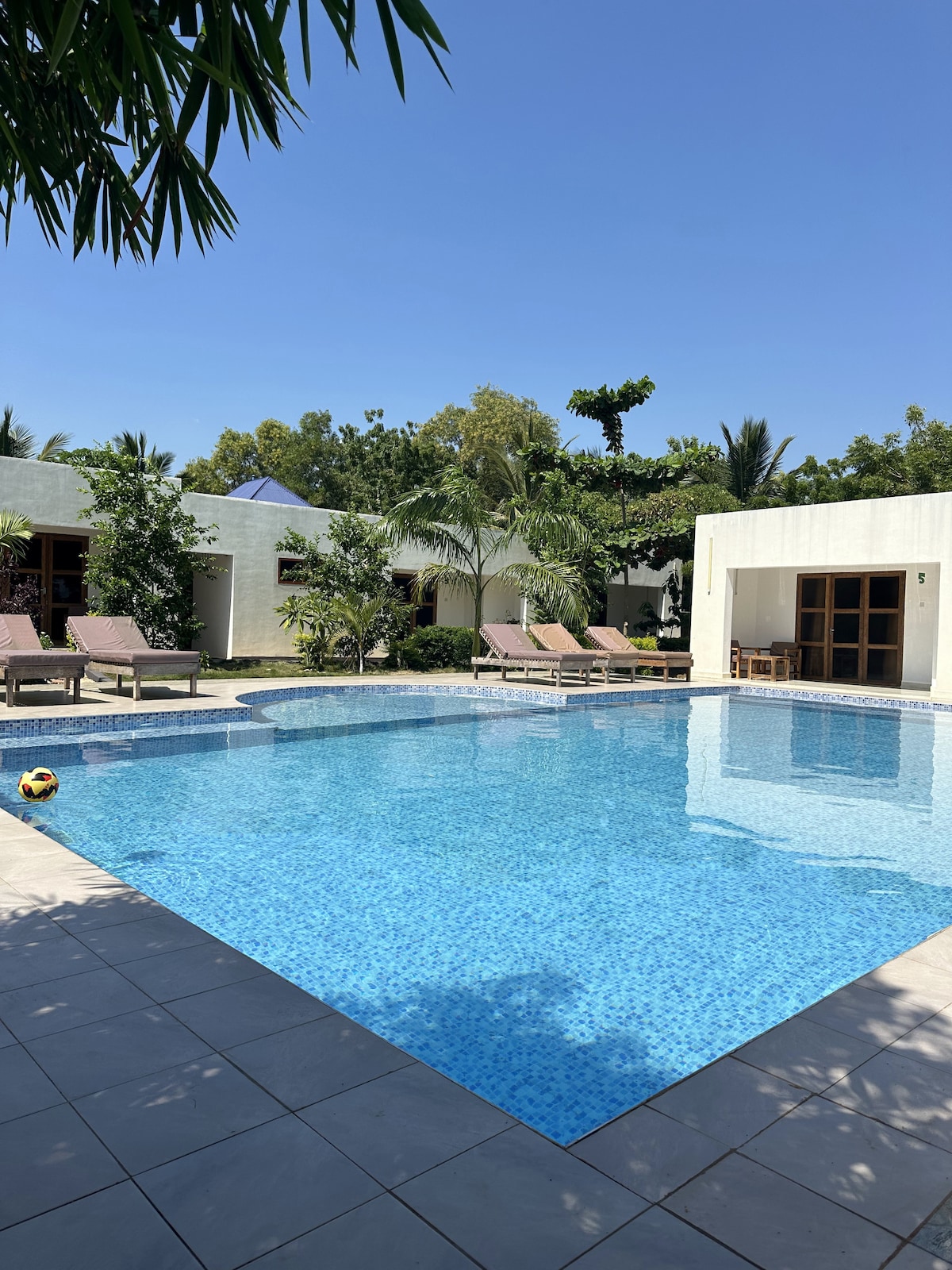 **NEW! A delicious breakfast is included in the price for up to 4 guests.** Enjoy a cozy two-bedroom villa nestled in a tropical forest, a 3-minute walk from the ocean. You'll find that the beach is perfect for sunbathing, and snorkeling. The villa is located in Fukuchani, northern Zanzibar. The best beaches of Kendwa are only 8 kilometers away. Guests have 24/7 access to a large swimming pool adjacent to our hotel. Additionally, there's an on-site restaurant offering delicious seafood.