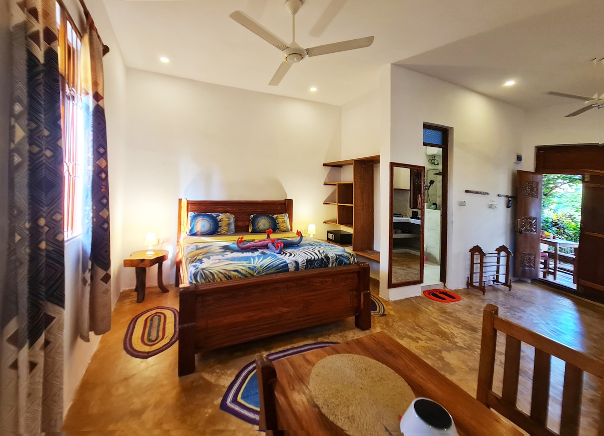 This is a small studio that includes: open kitchen terrace,room and bath. The breakfast is included,except for monthly stays. You can order lunch,dinner and drinks at an extra cost. Renting a scooter or a car is great for more freedom of exploring the island and independency. Local transportation is available on 5min walk. The busy beaches of Kendwa and Nungwi are in 15 min drive. Only small shops for basics available in the area. A few restaurants and resorts nearby.