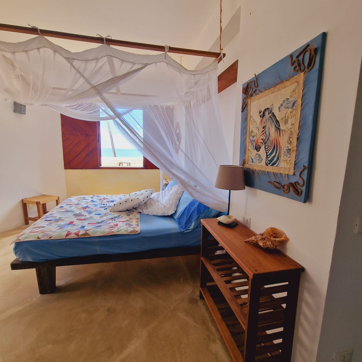 Wake up on the waterfront of the Indian ocean and a hot cup of coffee. Ocean to mouth eating fresh calamari-fish-crab, kayak to an island, watch sunsets, moon rises, bonfire evenings at waterfront restaurant/lounge. Lazy hammock days, rustic luxurious peaceful living, 6 star meals, not far from Kendwa/Nungwi. We live a simple life! This is not a luxury hotel, but a place to unwind and enjoy good company and nature. Welcome all travelers, families and couples. Breakfast is included.