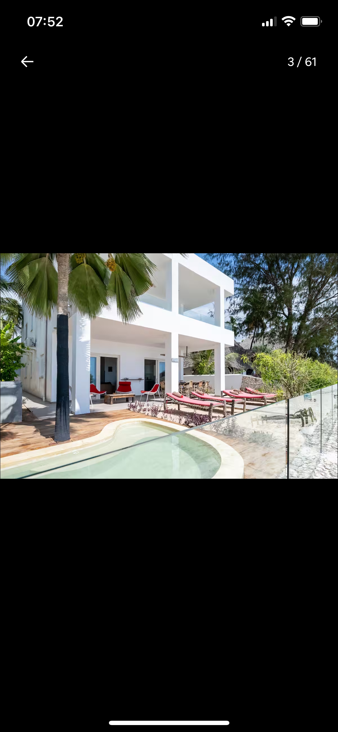 The villa is located 650 meters from the best beaches in Nungwi, between the RIU and Royal Zanzibar hotels. There are a total of 6 rooms for guests. The first floor has 4 bedrooms, and the second floor has 2 bedrooms, each with its own bathroom. Shops are a 7-10 minute walk away. A cozy restaurant where you can have breakfast or dinner is a 1-minute walk away. There is a beautiful pool with a fountain and a fully equipped kitchen. There is also a gazebo and parking lot on the premises.