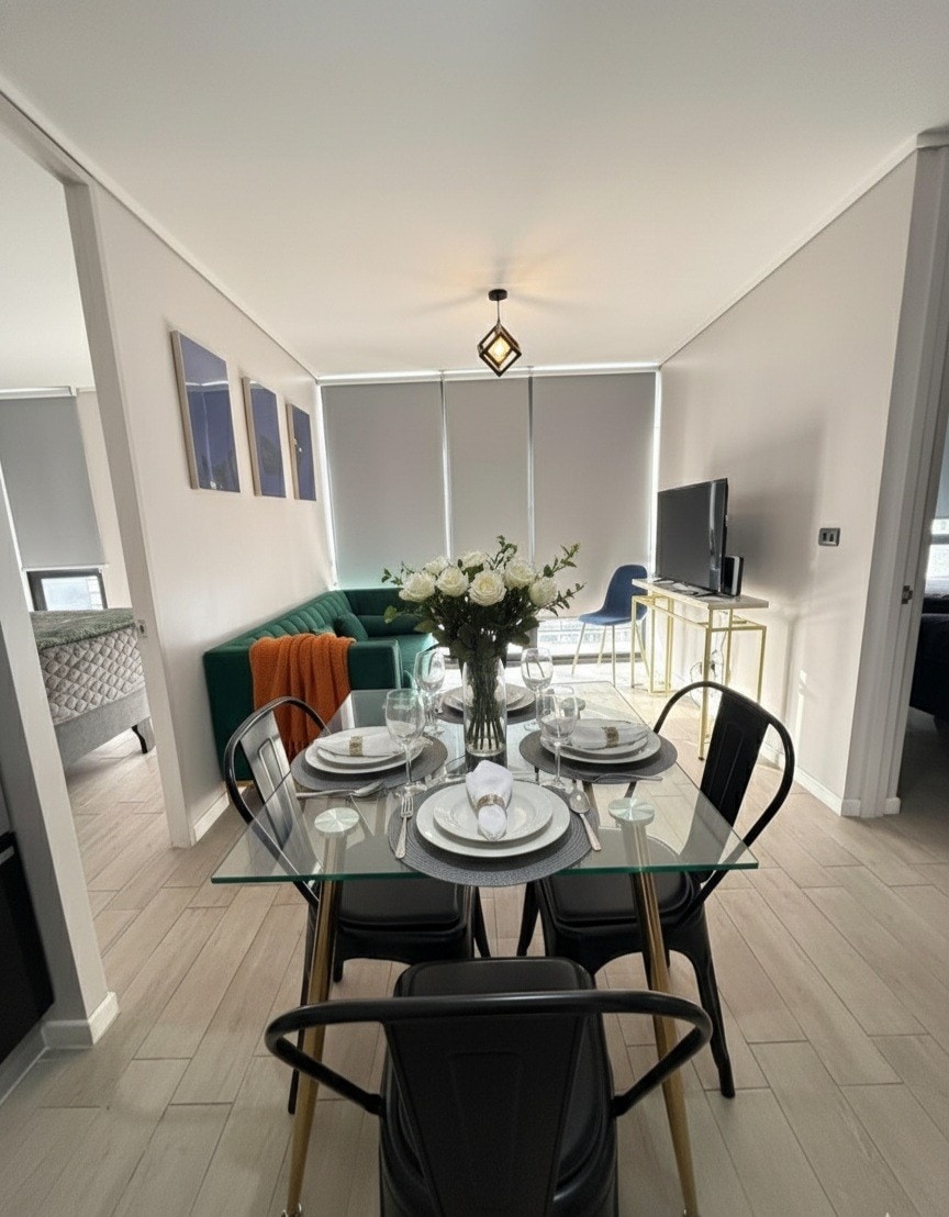 Beautiful and comfortable new apartment. Excellent location steps from the Agrícola metro station, in front of the university neighborhood. Central, easy access to the city via the metro. Close to the mall, supermarket, pharmacy, clinic and minutes from downtown. Furnished and equipped to rest comfortably. It has: - cutlery, glasses and cups for 4 people. - Electric oven. - Air fryer. - Toaster. - Kettle. - Microwave oven. - 5G Wi-Fi - Smart TV.