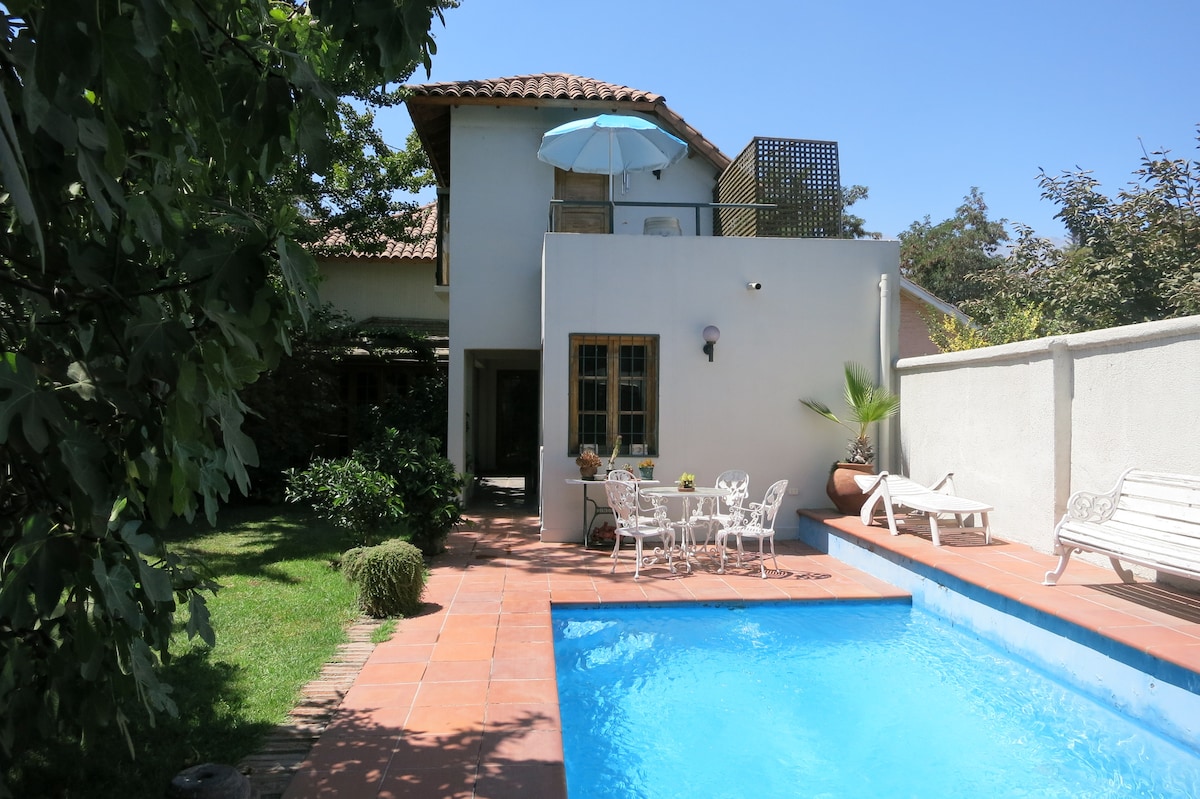 Private guest house in the best part of Vitacura next to the parque Bicentenario. Just blocks away from great restaurants and bars. Art galleries, cinema, elegant shopping makes it a perfect neighborhood to live in. Since it is at the end of the garden, the only noise you will have might be the birds singing. You will have access to the pool, the BBQ area, the exterior lounge areas. The supermarket is walking distance as is the public transport. Parking available. We have two labs.