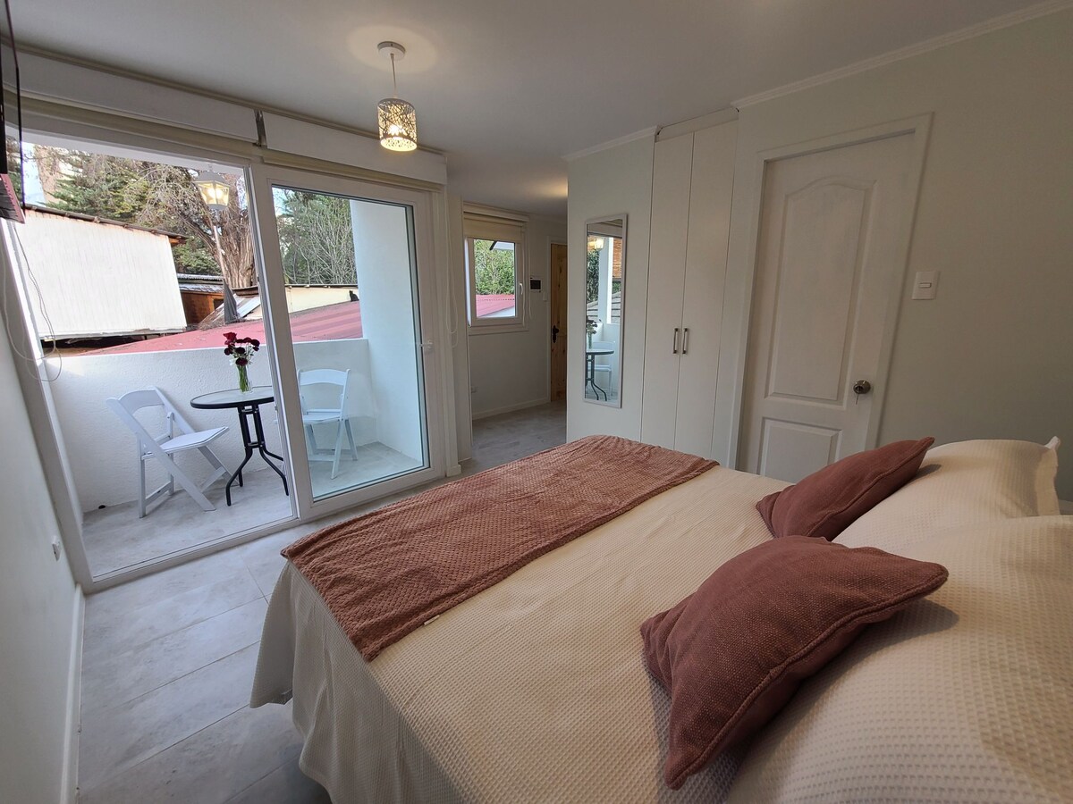 Enjoy the simplicity of this comfortable, quiet, and centrally located accommodation, perfect for a long stay. Located in Las Condes, this interior house for two offers private entrance and parking. Steps away from Bilbao Metro, supermarkets, shops, plazas, and sports clinic, with excellent transport links across the capital. In a central, safe neighborhood, it features a spacious bedroom with a king bed, fully equipped bathroom and kitchen, Wi-Fi, smart TV, heating, and a charming patio.