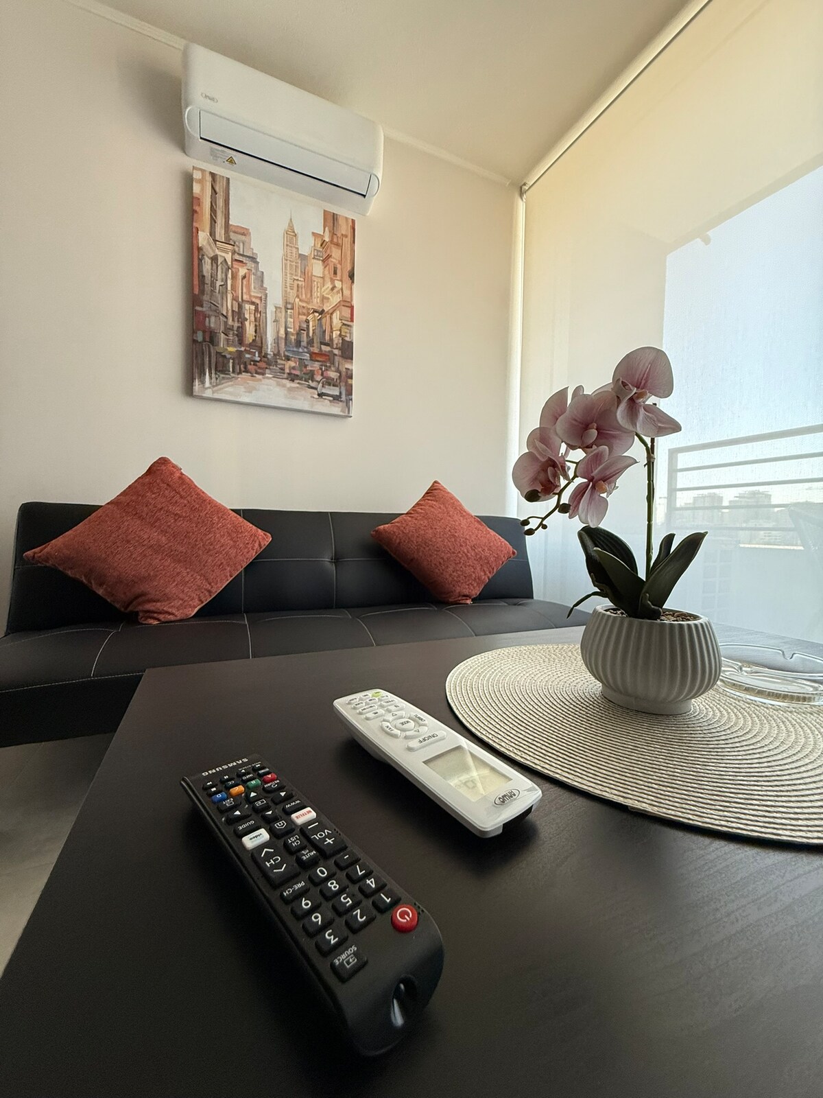 Modern apartment on the 31st floor with panoramic views of Santiago and the Andes, located right across from Irarrázaval Metro Station for easy access to the entire city. The apartment features a comfortable bedroom, bright living room with balcony views, a fully equipped kitchen, and a sofa bed for up to 3 guests. Perfect for couples, business travelers, or small families looking to enjoy Santiago from above.