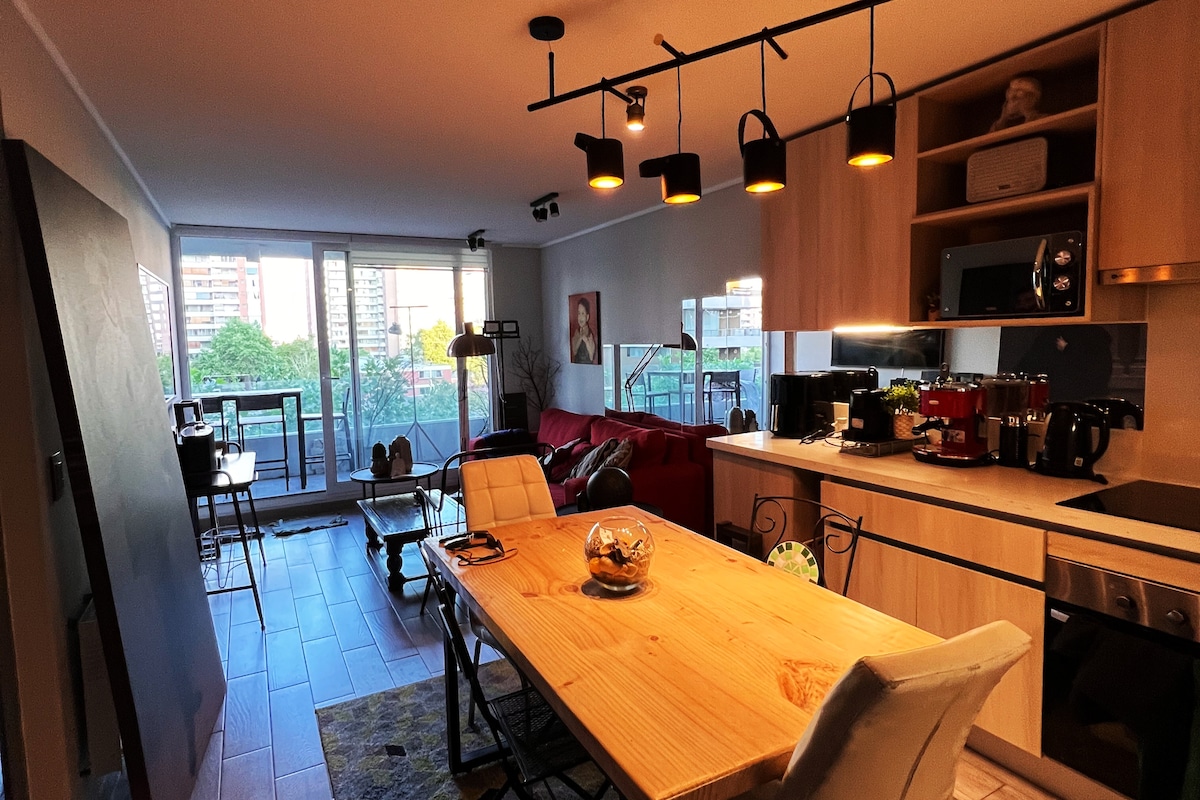 Céntrico e increíble departamento moderno, vanguardista de estilo minimalista; ubicado en un primer piso con patio privado en el que podrás encontrar un Jacuzzi🛀 con control de temperatura y burbujas todo para un merecido relajo en cualquier estación del año. Ademas incluye una Parrilla a Gas para quienes disfrutan de cocinar al aire libre con comodidad y facilidad acompañado de un amplio comedor de terraza. Ubicado en una de las principales avenidas del sector oriente de Santiago de Chile.
