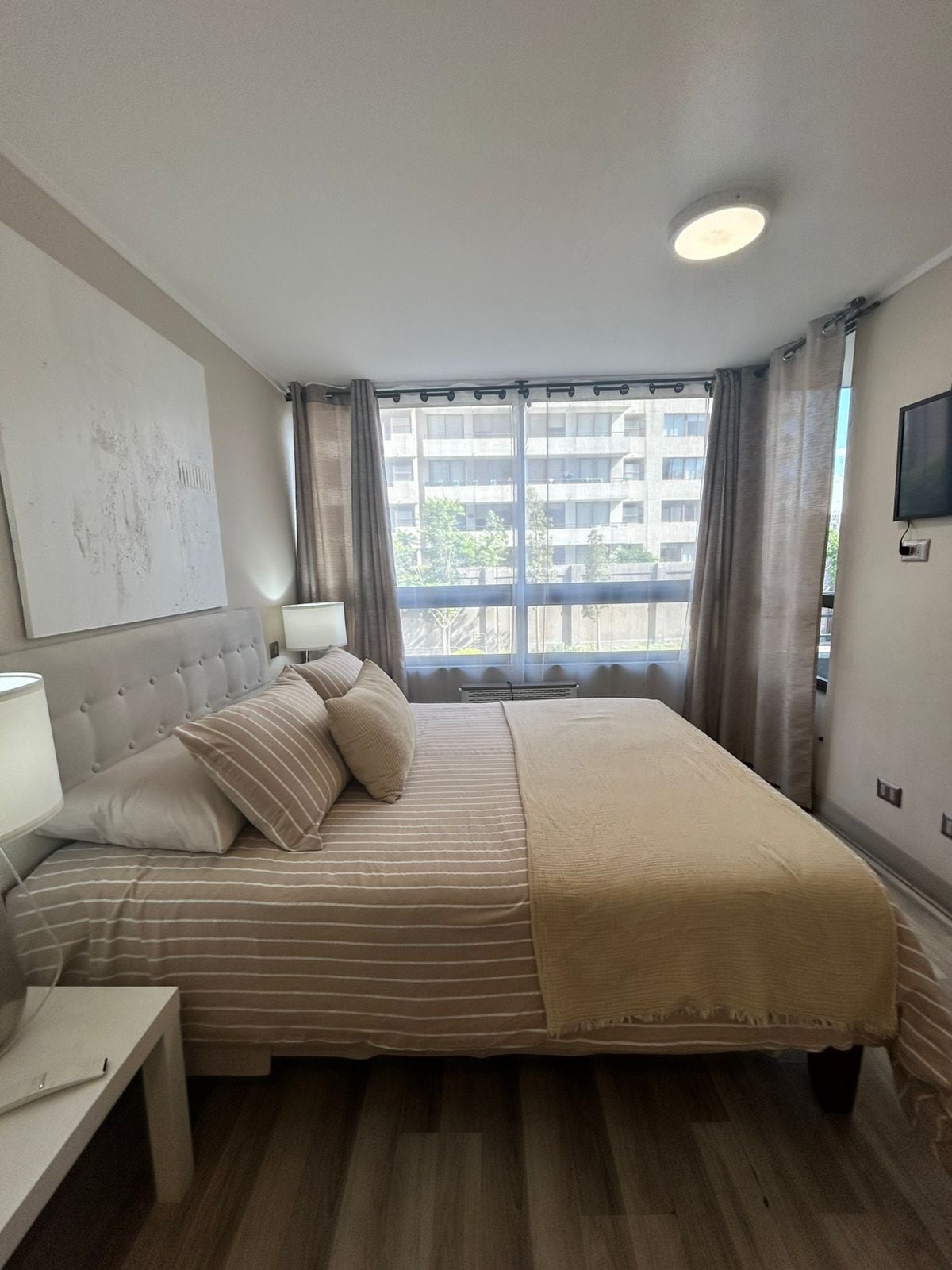 This apartment is ideal for relaxing and enjoying the city. It's centrally located, between the Santiago Centro and Providencia districts, one of the best locations in the city. It offers beautiful views of San Cristóbal Hill and the Sky Costanera. It's just a 3-minute walk from the metro and buses. Includes: Free Wi-Fi, a fully equipped kitchen, sheets and towels included, a large bed with a large Smart TV. Self-service entrance with a key, allowing you to arrive at any time.