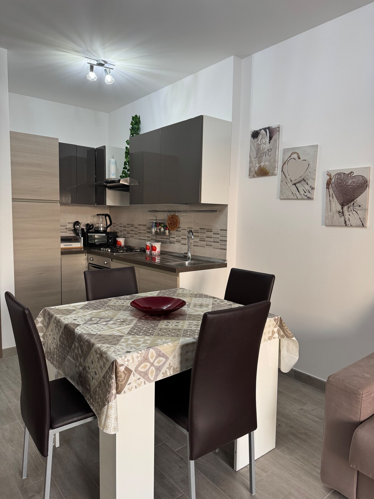 L'appartamento è un accogliente bilocale di 60 mq, modernamente arredato ed accessoriato. Si trova al TERZO PIANO di una palazzina, SENZA ASCENSORE. E' composto da sala con angolo cottura; 1 camera da letto matrimoniale; 1 bagno con box doccia. E' provvisto di lavatrice, lavastoviglie, forno elettrico, a microonde, frigo, freezer, climatizzatori. E' situato a 50 metri dal mare e a pochi passi dal centro storico.