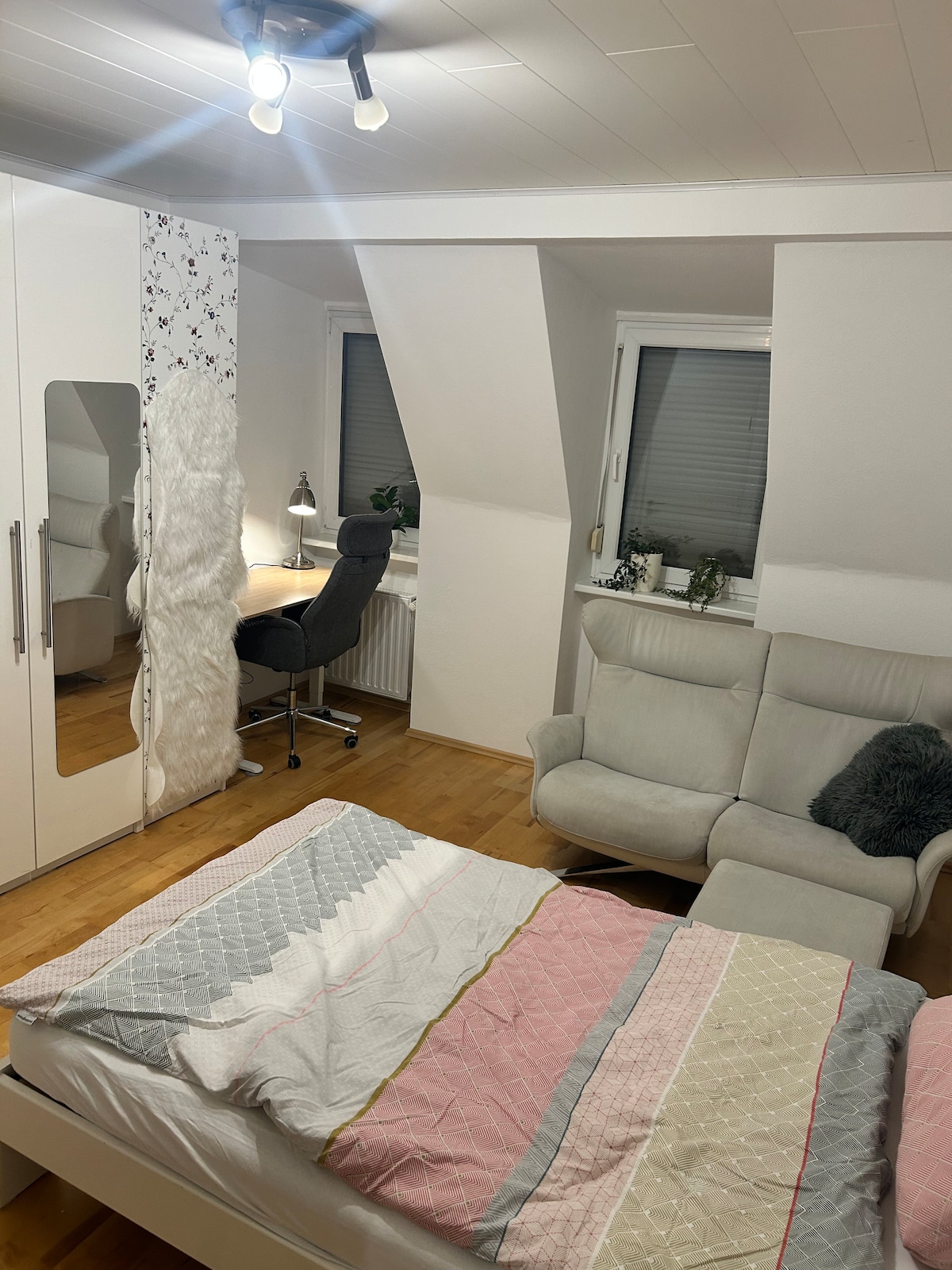 Gemütliches Zimmer mit eigenem Badezimmer (Toilette, Waschbecken und Dusche), kleiner Teeküche (keine Kochmöglichkeit) und separatem Eingang!! Entdecken Sie unser komfortables Zimmer, perfekt gelegen für Ihren Aufenthalt! Lage: Nur wenige Minuten vom Flughafen entfernt, ist unsere Unterkunft der ideale Ausgangspunkt für Ihre Reisen. Die U-Bahn-Station befindet sich direkt vor der Tür, sodass Sie die Stadt, die Messe, den Hauptbahnhof und alles weitere in Nürnberg bequem erkunden können.