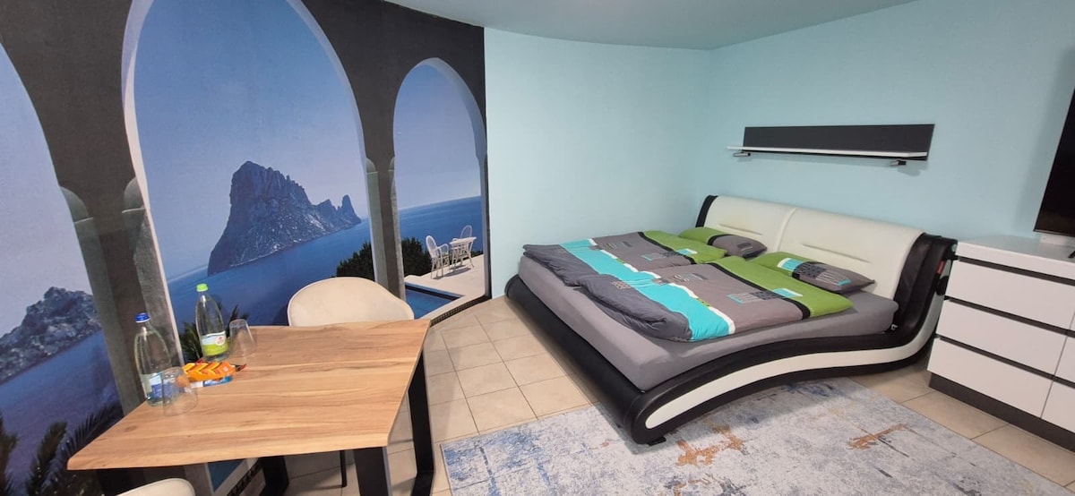 Das Ferienparadies ist ein Apartment in ruhiger Lage in Fürth. Dieses wunderschön eingerichtete Apartment verfügt über eine Küche mit Herd, Backofen, Geschirrspüler und Mikrowelle. Es gibt auch ein Schlafzimmer mit einem Doppelbett und zwei Einzelbetten, ein Wohnzimmer mit einem Esstisch, einem Schlafsofa und einem Flachbild-TV sowie ein Badezimmer mit einem WC, 2 Waschbecken, einem Duschkopf und einer Whirlpool-Badewanne für 2 Personen. Die Mitarbeiter geben Ihnen gerne Auskunft 017661898757.