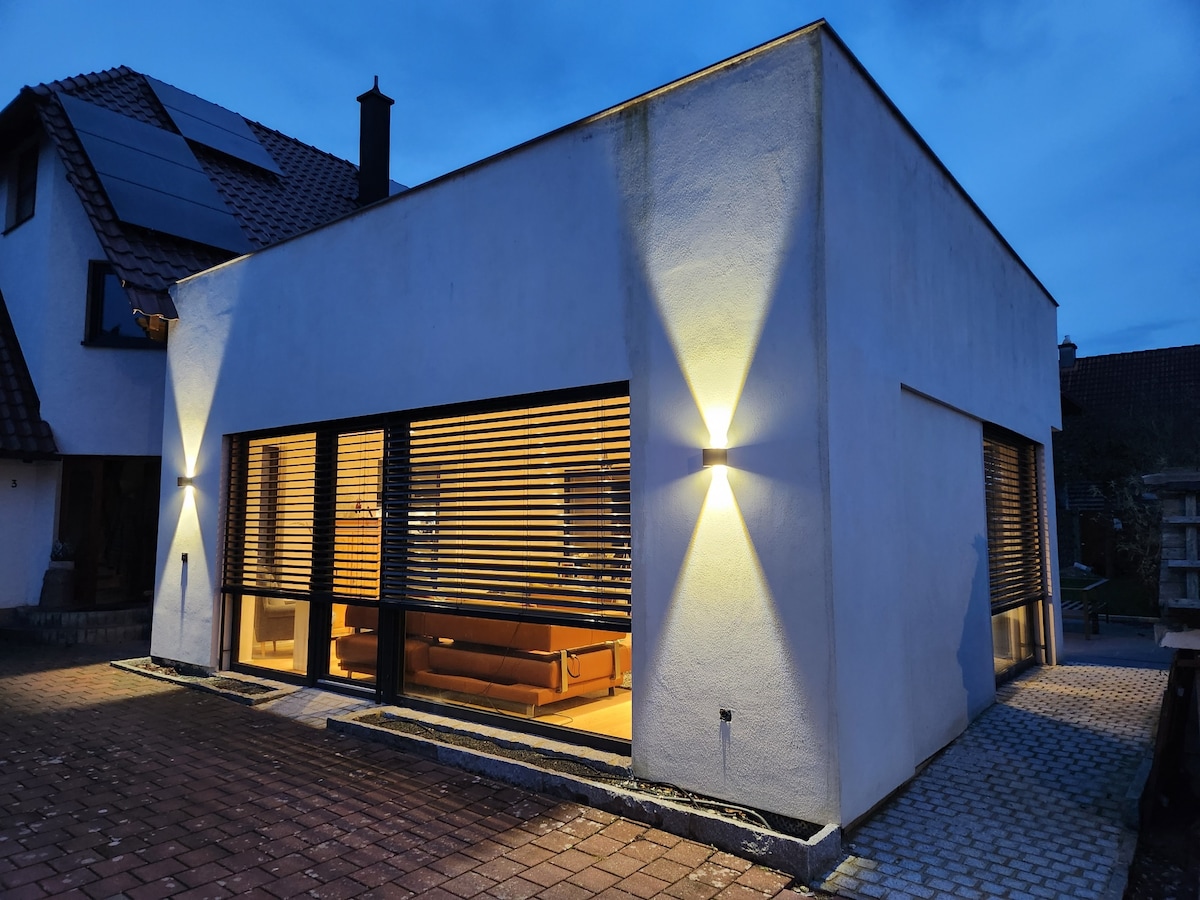 Ruhige Oase im Wald und dennoch sehr gut mit öffentlichen Verkehrsmitteln erreichbar. Mit der S-Bahn in 15 Minuten zum Hauptbahnhof und in die Innenstadt von Nürnberg. Das Haus hat 5 Schlafzimmer. Zudem noch ein riesiges Loft Wohnzimmer wo alle zusammen kommen können. W-Lan, Netflix, Disney +, Sauna, Grillplatz und mehreren Terassen. Ausgestattet mit Kaffeevollautomat, alle Küchenutensilien, Waschmaschine und Trockner.