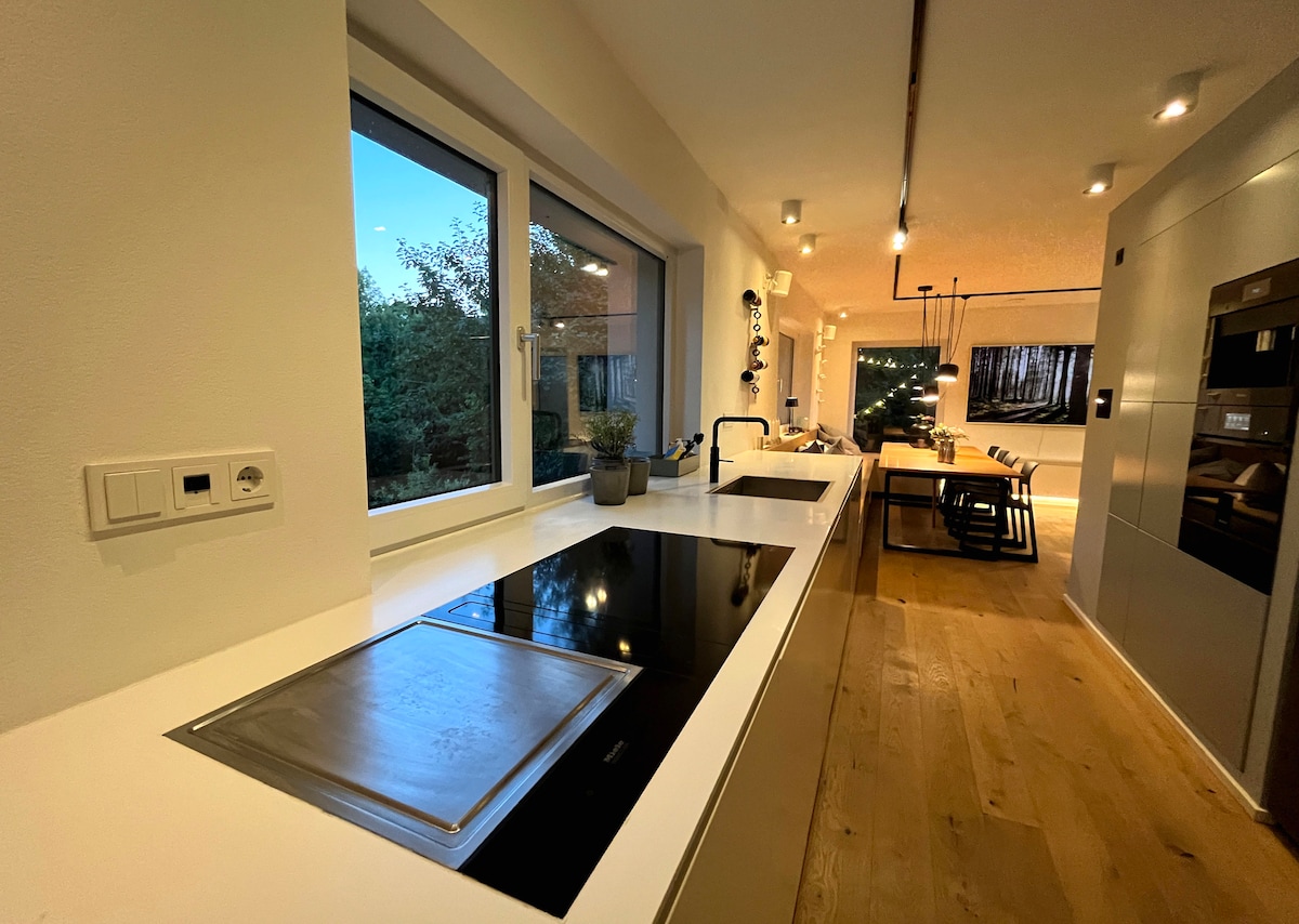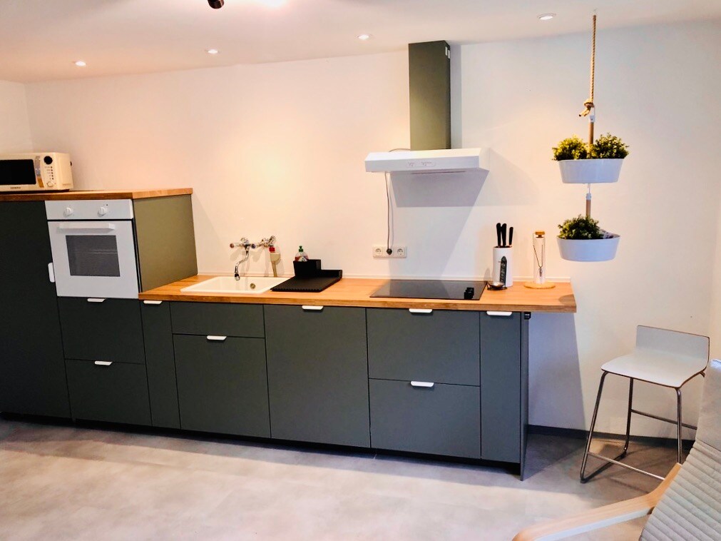 Preis jetzt inkl. AirBnB-Gästegebühr! Dieses große Studio besticht durch den Sichtdachstuhl, der eine sehr behagliche Atmosphäre erzeugt. In dem Holzhaus ist eine permanente Lüftung vorhanden. Im Schlafzimmer sorgt ein großes Wasserbett (2 m x 2,20 m) für guten Schlaf. Die Unterkunft wurde liebevoll individuell ausgestattet. Die Küche ist klein aber super ausgestattet. Grillen und Sonnen im Garten. Außensauna, 2 eBikes, Thule Cab2 sowie Wallbox für E-Autos jeweils extra zubuchbar.