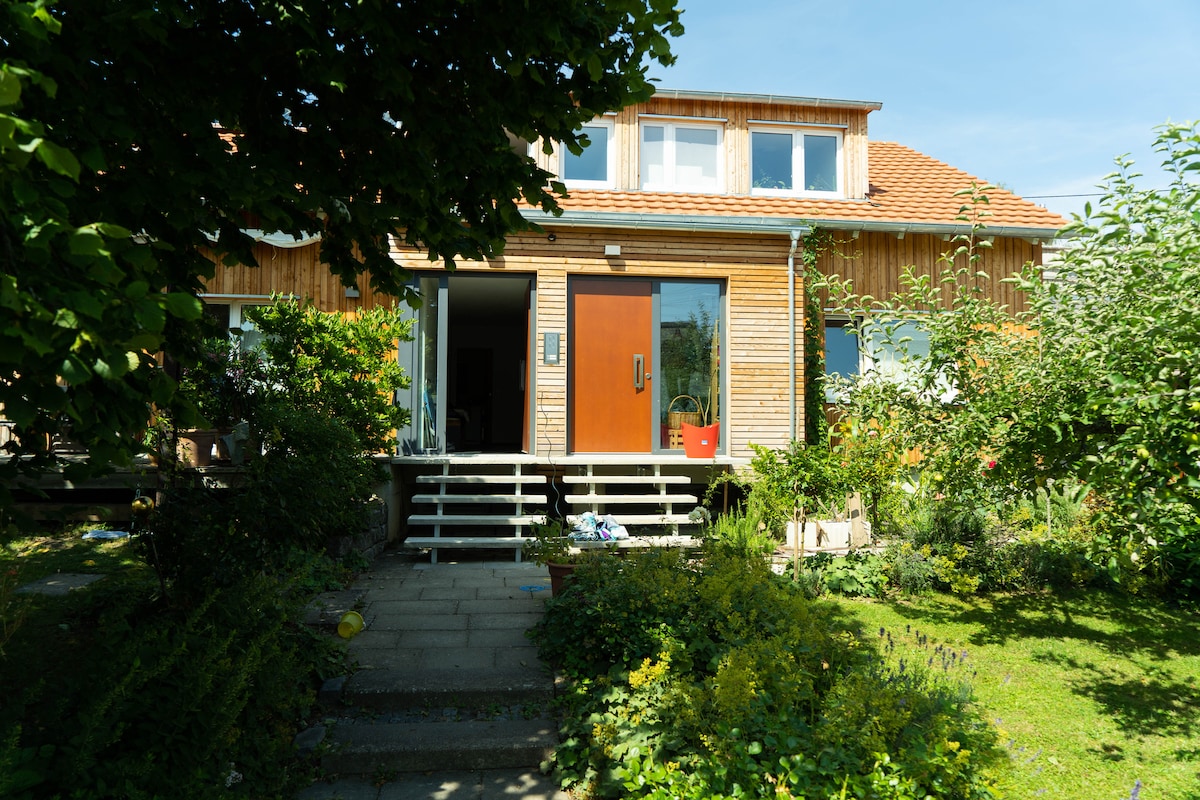 Wir bieten ein geräumiges, voll ausgestattetes Einfamilienhaus, das geschmackvoll und mit viel Liebe eingerichtet ist. Neben der schönen Umgebung, die zum Wandern, Radfahren und Entdecken einlädt, bietet das Haus viel Platz zum erholen, einfach sein und sich entspannen. Die sonnige Terrasse und ein großzügig angelegter Gartenbereich laden dazu ein. Das Haus hat einen separaten Eingang, der nur von den Gästen benutzt wird und Parkmöglichkeiten am Haus.