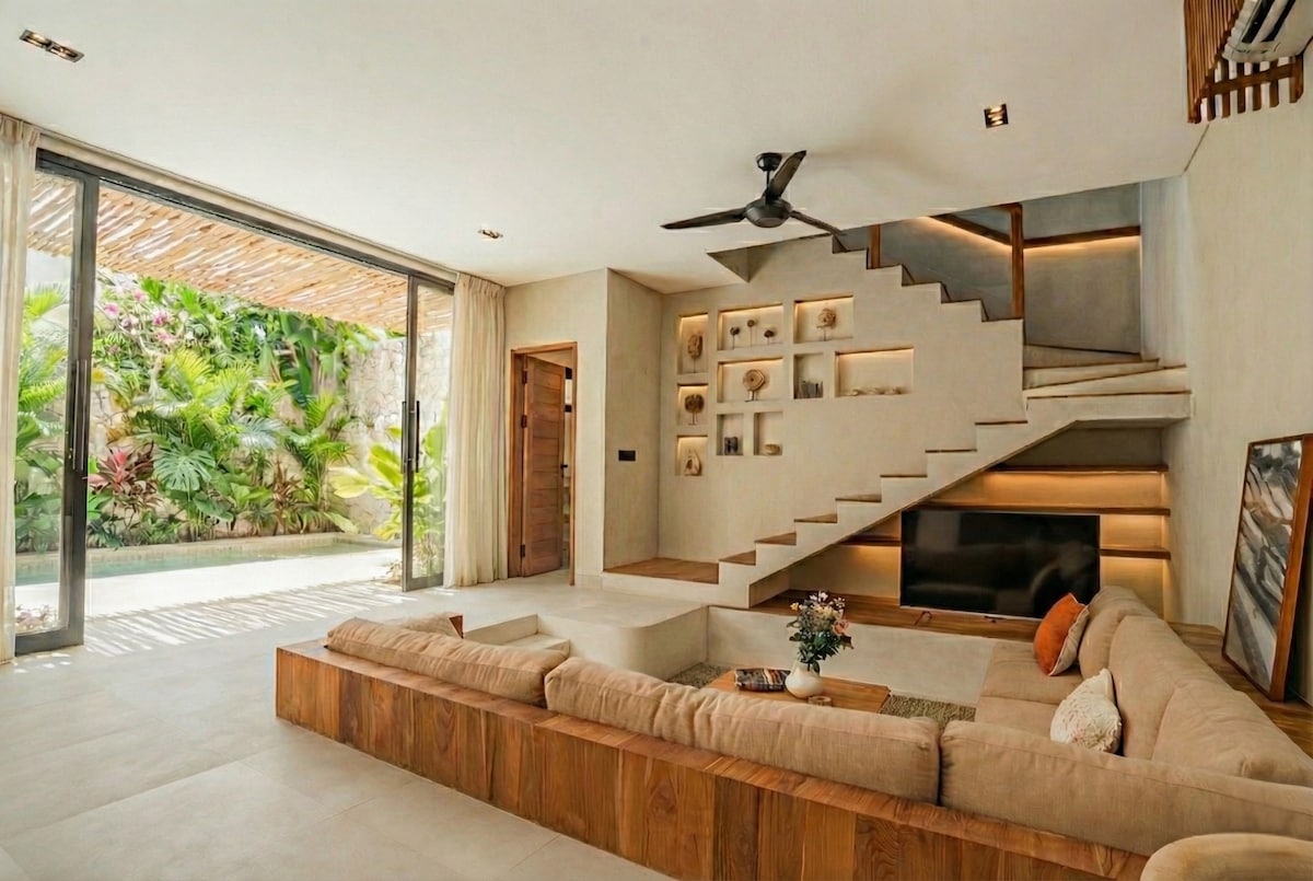 This unique place has a style all its own. "BRAND NEW SUPER WONDERFUL VILLAS " Let's relaxes here with a ROMANTIC ATMOSPHERE and modern architecture. You will get everything when you are on vacation at our Villas. Room with AC, Flat LED 4k screen 50" + NETFLIX BEAUTIFUL Bathroom with aesthetics wall shower, hot and cold water. Complete with amenities. Amazing Living room & Kitchen equipped with all basic equipment, Microwave, fridge, hot and cold water dispenser, stove, and cutlery.