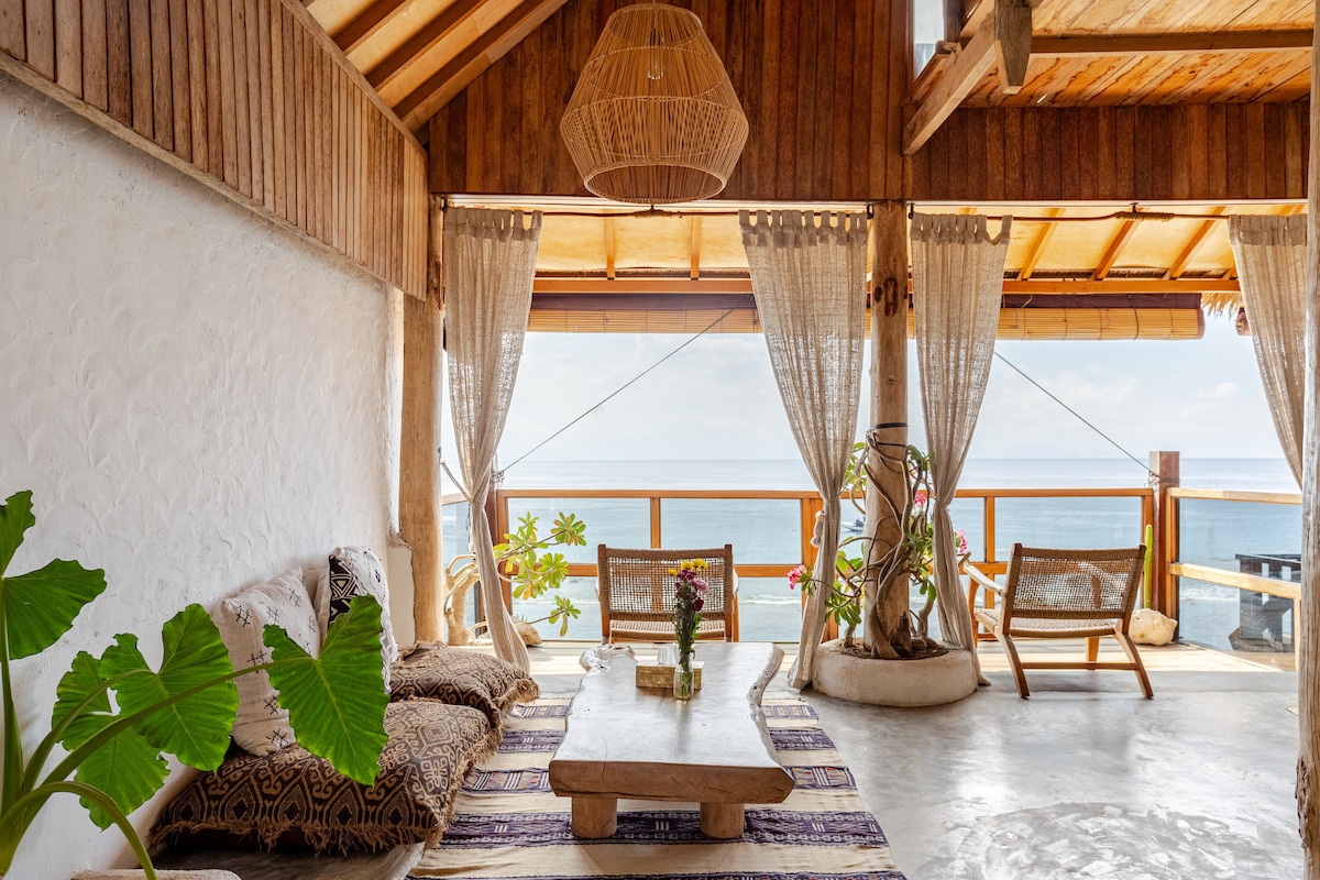Absolute oceanfront private villa on Nusa Lembongan with stunning views of the surf and Mount Agung. Perfectly located within meters to the islands best bars & restaurants. Walking distance to the swimming beach. Private plunge pool. Best location on the island! straight off the main path - minimal steps to climb - Free drinking water - WIFI - A/C - Safety box - Mini Bar - lounge room with Tv & movies - massages on request by the pool for 200k - scooter hire - night watchman