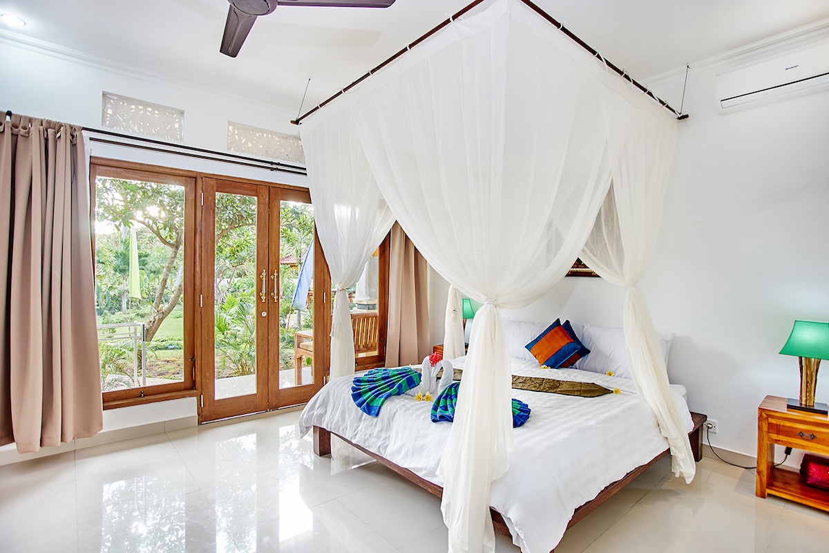 Bungalow traditionnel balinais tout en bois, décoré avec goût. La chambre de 24 m2 possède un lit 180 x 200 très confortable, un bureau et une grande armoire. La salle de bains attenante comprend une grande douche à l'italienne avec eau chaude, un WC et un grand lavabo avec miroir. Le petit déjeuner inclus, vous sera servi chaque matin, entre 8h et 11h selon vos souhaits. Vous aurez le choix parmi du pain, des pancakes vegan, des oeufs, ou un smoothie bowl, le tout fait maison.