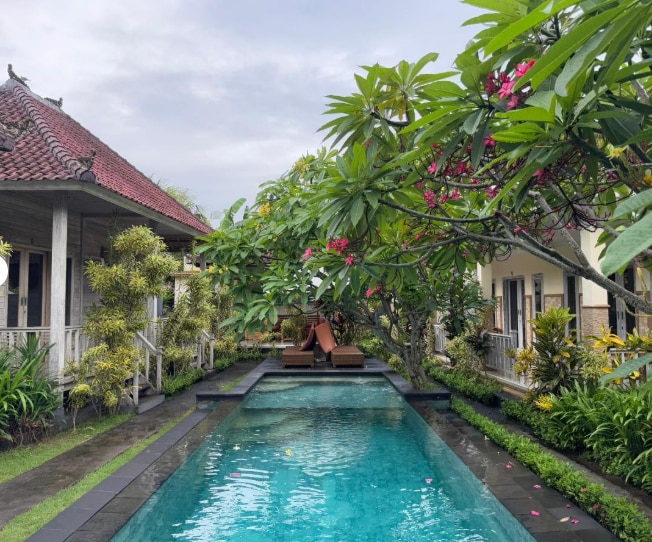 Escape to tranquility at Cassava Penida Cottage, nestled amidst lush tropical trees. . Just a short stroll (550 meters) to the pristine SD Point beach, our cozy rooms offer AC, queen sized bed and private bathrooms. . Stay connected with free WiFi and enjoy the convenience of provided toiletries. . Experience the perfect blend of serenity and seaside adventure at our idyllic retreat. . For your convenience, we can provide fast boat ticket, scooter rental, island and snorkeling tour.