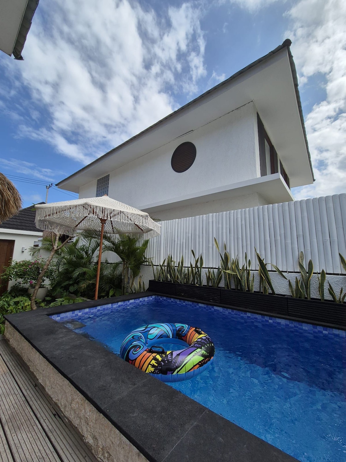 Casa Luna is a private 3-bedroom villa in Nusa Ceningan near the iconic Yellow Bridge and Secret Beach. Surrounded by crystal clear waters, this Mediterranean-inspired private villa offers 3 spacious & air-conditioned bedrooms, 3 bathrooms, a private swimming pool with sun loungers, bathtub corner and a kitchen with a large dining table for tropical evenings. Ideal for families or group getaways seeking privacy, comfort & authentic island living 🏝️☀️ Comfortably accommodates up to 6 guests.
