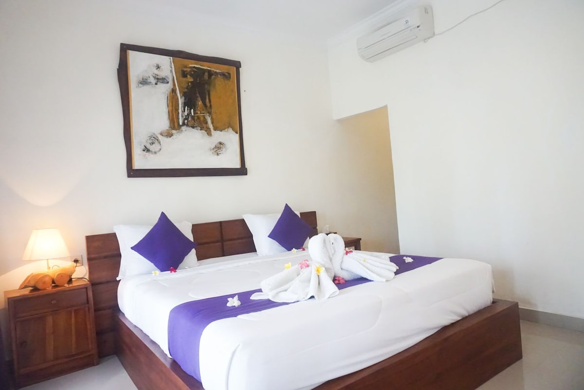 Bungalow traditionnel balinais tout en bois, décoré avec goût. La chambre de 24 m2 possède un lit 180 x 200 très confortable, un bureau et une grande armoire. La salle de bains attenante comprend une grande douche à l'italienne avec eau chaude, un WC et un grand lavabo avec miroir. Le petit déjeuner inclus, vous sera servi chaque matin, entre 8h et 11h selon vos souhaits. Vous aurez le choix parmi du pain, des pancakes vegan, des oeufs, ou un smoothie bowl, le tout fait maison.