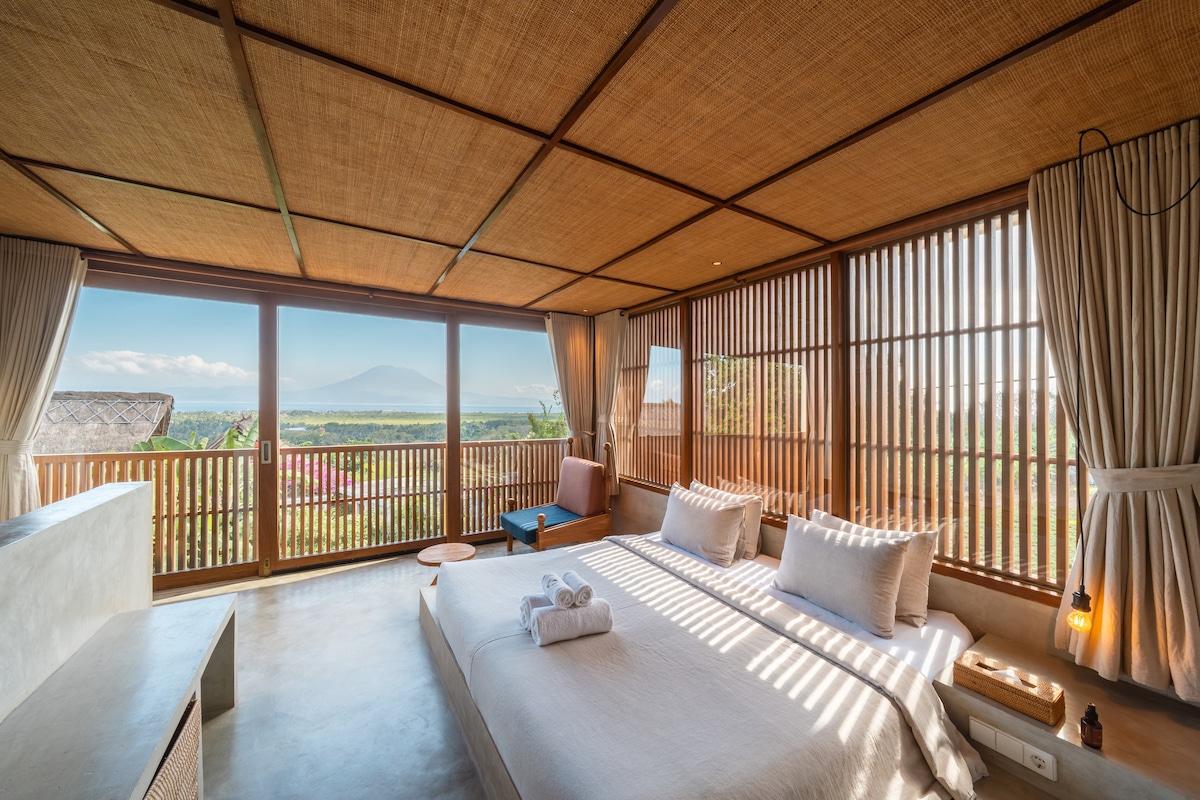 Perched on Jungutbatu’s quiet side, this newly built villa offers stunning views of the jungle, ocean, & Mt Agung. Located 5 minutes from Coconut Beach and Jungutbatu's eat street, it’s perfect for solo travellers or couples. If you love this villa but it's not available on your dates, contact us as we have another 1BR villa next to it (subject to availability).