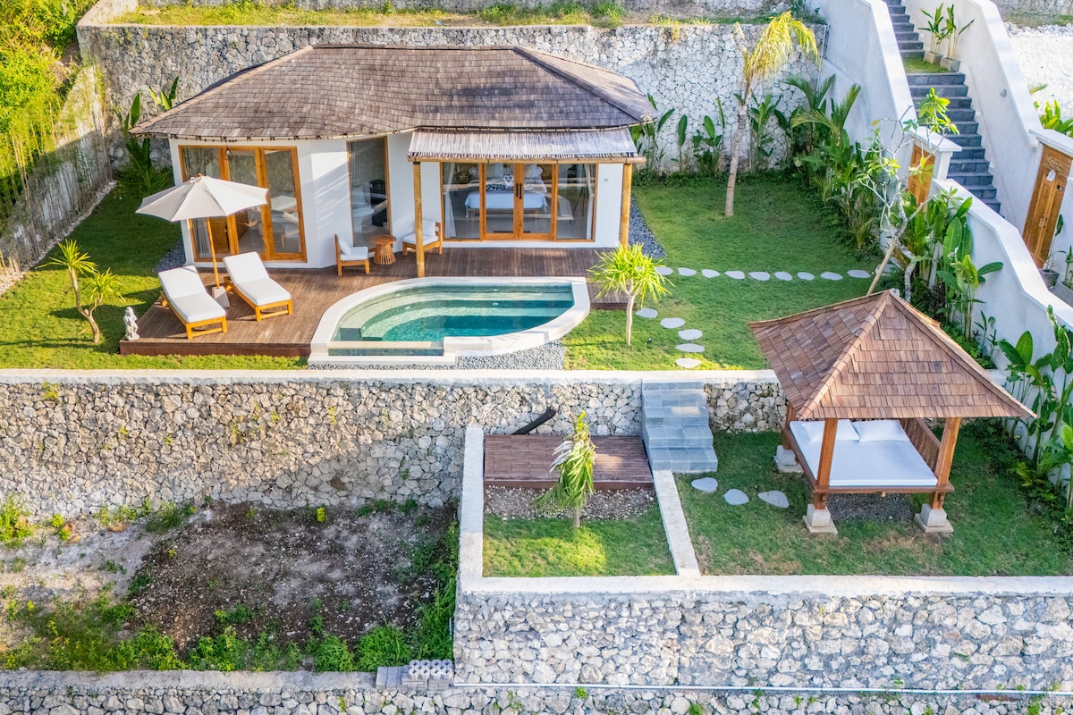 Nestled atop a cliff overlooking the ocean, the villa offers unparalleled views of the shimmering waters below. Guests can also enjoy serene vistas of the lush green hills of Nusa Penida, providing a perfect blend of coastal and countryside scenery. The unique location ensures privacy and tranquility, making it an ideal retreat for relaxation and rejuvenation.