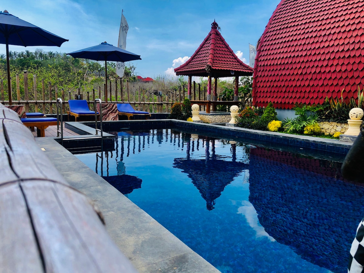 Tempat ini merupakan perpaduan dua setail, antara setail modern dan setail klasik yang sangat menonjol ,dan juga sangat bagus dalam melihat matahari terbit hanya duduk di atas kasur atau duduk di teras kamar , sangat dekat dengan yellow bridge yang merupakan pelabuhan special untuk pergi ke Nusa penida,hanya 5 menit aja untuk pergi ke blue lagon,10 menit ke manggrove forest, mahagiri beach, dream beach,devil dan pelabuhan mushroom, pemandangan hutan bakau yang sangat mempesona.