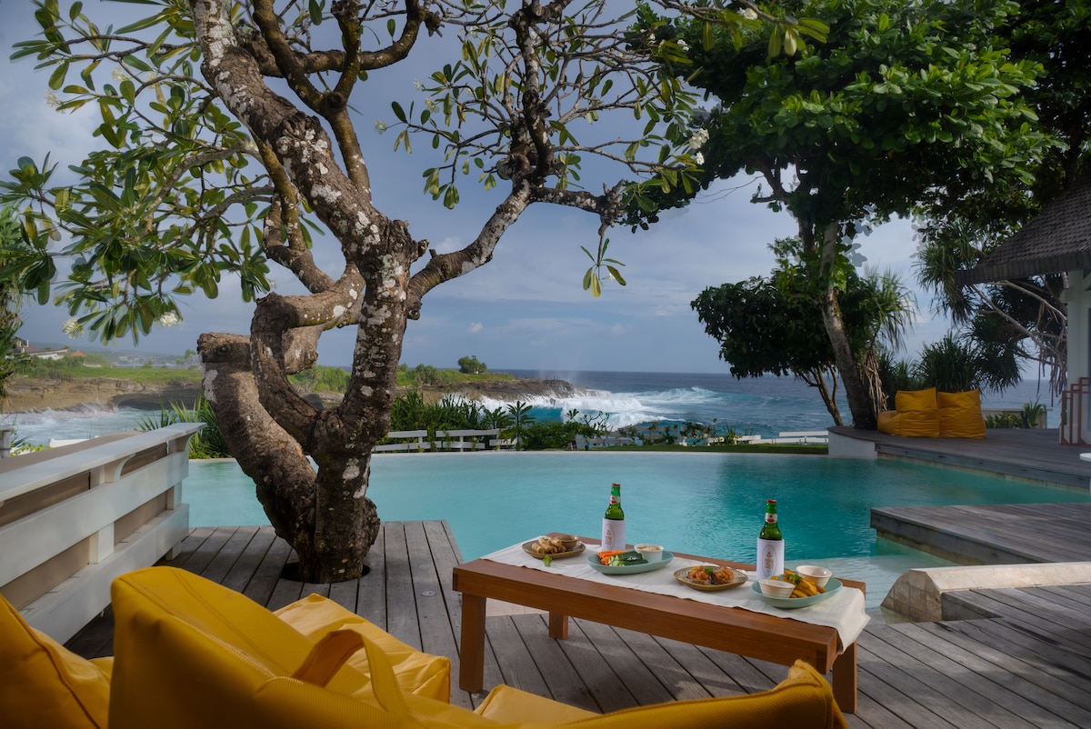 Nusa del Rey is a luxury oceanfront retreat with five beautiful bedrooms, a private pool, open-plan living, and a sunset fire pit with ocean views. Daily gourmet breakfast is included, featuring fresh pastries, tropical fruit, homemade breads, and breakfast mains to choose from. Our dedicated team of five ensures a seamless stay, with a curated minibar and lite bites menu designed to elevate your island experience on Nusa Lembongan.