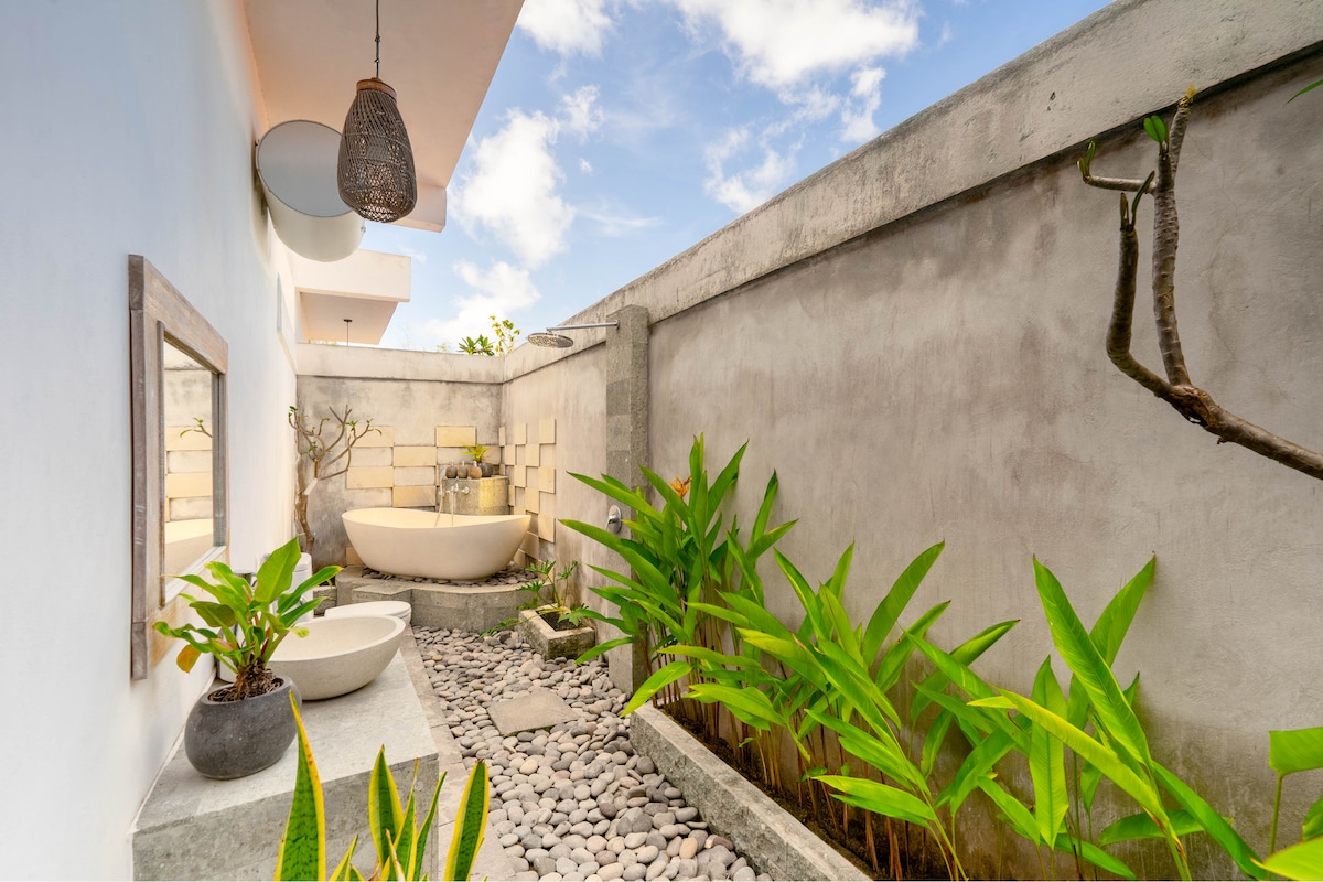 Nestled atop a cliff overlooking the ocean, the villa offers unparalleled views of the shimmering waters below. Guests can also enjoy serene vistas of the lush green hills of Nusa Penida, providing a perfect blend of coastal and countryside scenery. The unique location ensures privacy and tranquility, making it an ideal retreat for relaxation and rejuvenation.