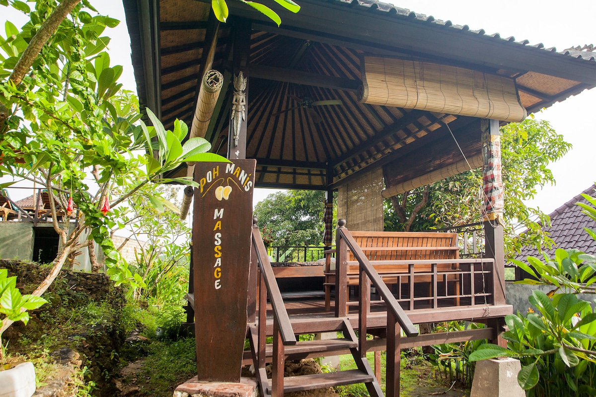 Stay in the heart of Nusa Penida, secluded within Bali's bird conservation, with flocks of birds singing over you! & surrounded by 100-year-old trees! Enjoy your stay in a unique-charming room with a pool, & outdoor-indoor shower! Only 200m from Nusa Penida's most famous area of restaurants, bars, and beach clubs & dive centers! Only a few walking distances to a pristine beach overlooking Mount Agung with beautiful coral scenery perfect for diving & snorkeling.