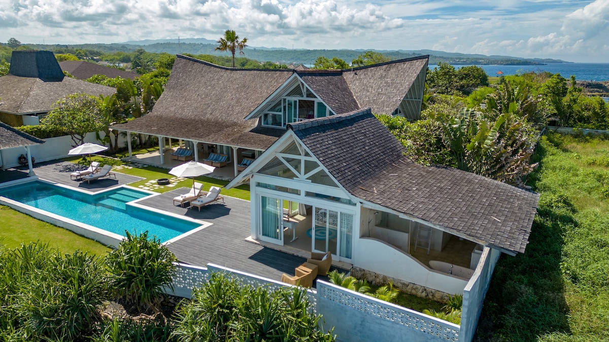 A brand new, spectacular luxury villa with amazing views of the Lembongan island. an exotic blend of nautical architectural styles and is wonderfully appointed throughout with art indigenous to the island alongside the owner's personal as photographer is designed with luxury, comfort & privacy top of mind. Featuring a infinity pool and outdoor balcony complete with an a hammock ocean view it feels like a home as well as a little piece of holiday paradise.