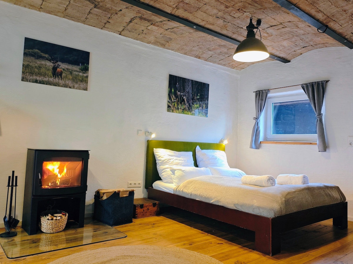 In unserer mit Liebe sanierten und eingerichteten Gästesuite am Waldrand kommst Du zur Ruhe. Hier ist der richtige Ort zum Lesen, Schreiben, Meditieren, Kochen, zum Sternegucken, Pilzesammeln, Hühnerfüttern, für Lagerfeuer, Waldspaziergänge und Tierbeobachtungen. Wer eine Zeit lang abschalten und die Natur genießen möchte, ist hier richtig. Der Ort eignet sich auch gut für etwas längere Auszeiten, etwa um ein Buch zu schreiben.