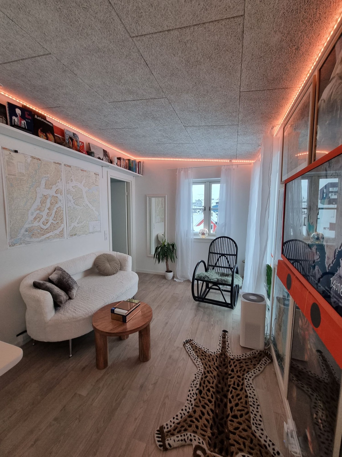 Nyd din ferie i en unik nybygget lejlighed, med den bedste udsigt over Nuuk fjorden. Nyd solnedgangen og se nordlyset inde fra lejligheden. Det er i et roligt og hyggeligt område i den gamle og ikoniske bydel “myggedalen” Det er i gåafstand til kolonihavnen og bymidten. Den rummelige lejlighed har en hyggelig stue med stort TV, samt fuldt udstyret køkken. Soveværelset har en dobbeltseng og i stuen er der en stor og behagelig sovesofa. Lejligheden deler indgang med et lille kontorfællesskab.