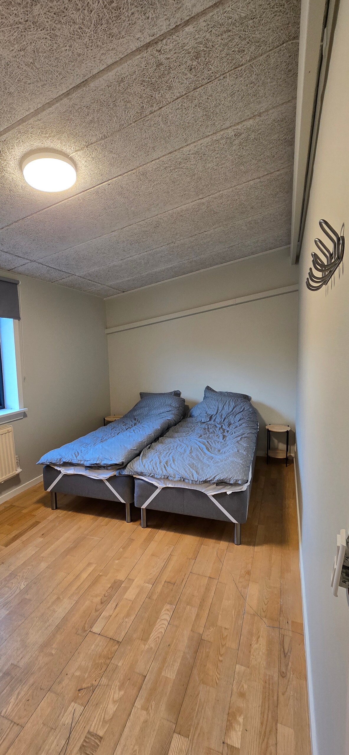 Centralt beliggende med tre værelser, hvoraf to har dobbeltseng. INGEN fælles stue med sofa, men alle værelser er udstyret med tv. Kitchenette med microovn, miniovn, el-kedel, varmeplader, bord og stole, køleskab, fryser, vaske- og opvaskemaskine. Ikke egnet til stor madlavning, men rigelig godt til at opvarme mad. Eget badeværelse med brus. Bord/bænk udendørs på terrasse. Prisen inkluderer Grønlands lovpligtige overnatningsafgift på DKK 30 per person per nat gældende fra 1 januar 2026.