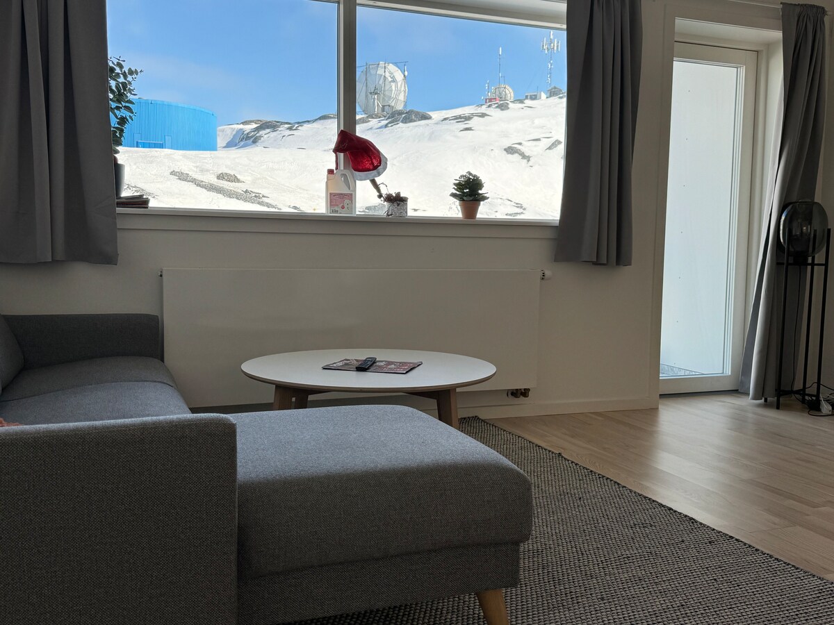 Nyd din ferie i en unik nybygget lejlighed, med den bedste udsigt over Nuuk fjorden. Nyd solnedgangen og se nordlyset inde fra lejligheden. Det er i et roligt og hyggeligt område i den gamle og ikoniske bydel “myggedalen” Det er i gåafstand til kolonihavnen og bymidten. Den rummelige lejlighed har en hyggelig stue med stort TV, samt fuldt udstyret køkken. Soveværelset har en dobbeltseng og i stuen er der en stor og behagelig sovesofa. Lejligheden deler indgang med et lille kontorfællesskab.