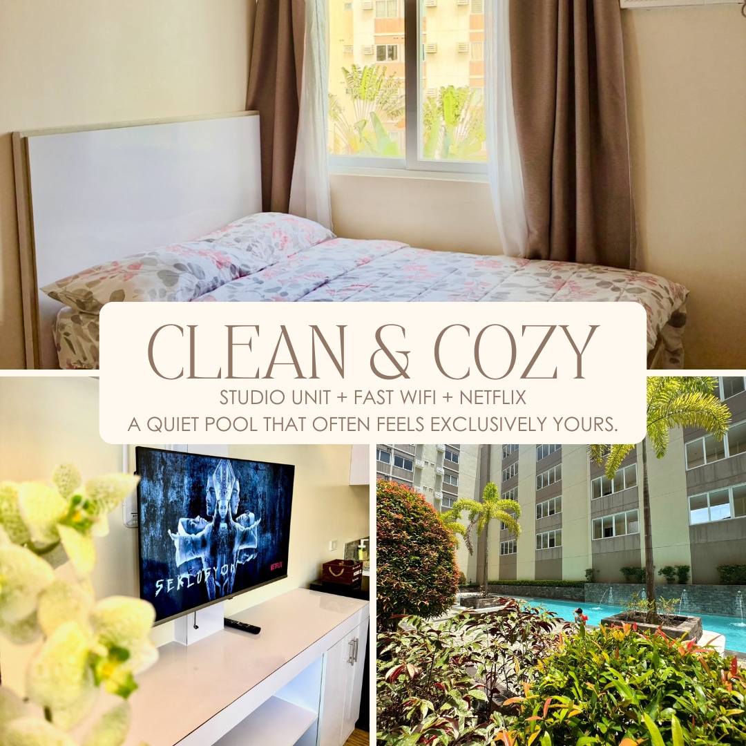 Enjoy these amenities: - Assigned parking spot -Convenience store inside the community -Very close to Tagaytay, Ayala Malls Solenad, S&R and countless great restaurants -Walking distance to Xavier school -WiFi -Smart TV -Air conditioning - Cook your own meals -Full bathroom with hot shower & toiletries. -Fresh linens and towels -Fridge, microwave, kettle, cookware & dining space -Iron, hair dryer, 24/7 security, elevator, pool & gym access.