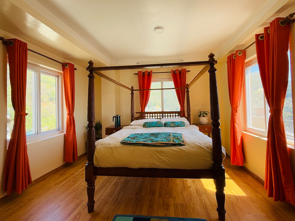 Forget your worries in this spacious, serene mountain retreat surrounded by forest and breathtaking views. Wake up to birdsong and the whisper of trees. A peaceful gompa and swimming pool are nearby with a jungle walk just next door. The house offers cozy interiors, comforts, large windows framing nature’s beauty and a warm welcoming vibe perfect for relaxing, reconnecting, and soaking in the mountain magic