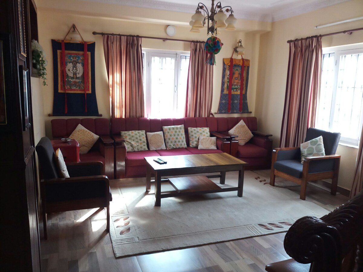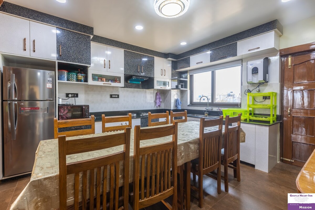 . Cozy top-floor private room in peaceful Budanilkantha . Ideal for solo travelers or couples . Queen bed with private attached bathroom . Access to a large terrace with scenic views . Grocery shops 2-min walk . Transport, pharmacy, salon, restaurants, coffee shops, dairy, supermarket & gym within 700 m . ISKCON & Budanilkantha Temple nearby . Price in Airbnb for 1 guest; USD 8/night extra for second guest