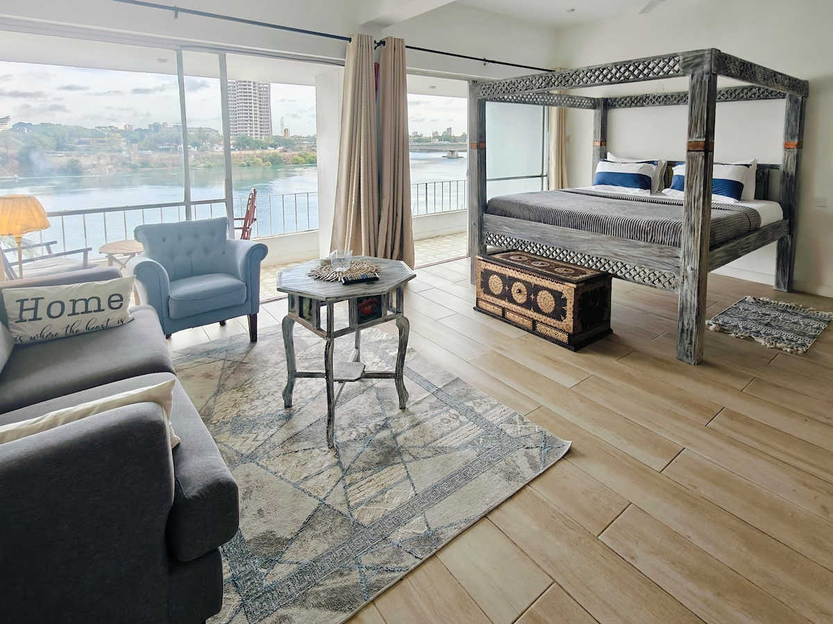 This bright, furnished studio apartment, with direct access to the scenic Bamburi Beach, is the perfect getaway location for a solo vacation or family trip. Amenities include a restaurant and bar, fitness room, swimming pool, and a baby/children's pool. Our corner of the beach is peaceful and quiet, but a leisurely beachfront stroll will bring you to livelier sections within minutes. Other recreational spots (City Mall Nyali, Haller Park and the Mombasa Marine Park) are within easy reach.